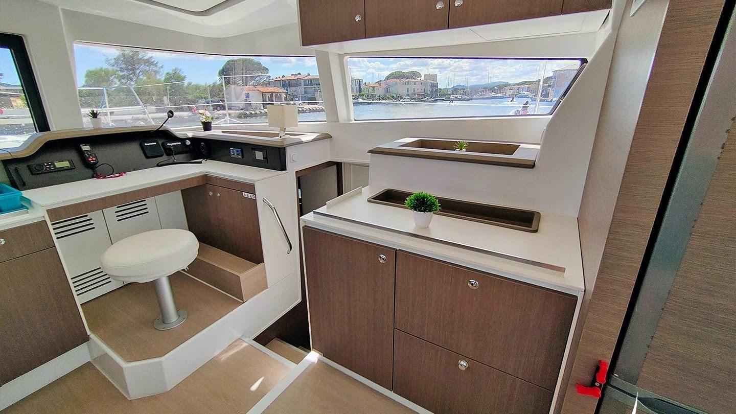Odometer (Raymarine Multi I70S), DSC vhf (RAY 63), Autopilot (Raymarine P70S), Plotter with GPS antenna (Raymarine Axiom 7), Sonar (Raymarine Multi I70S), Wind Station (Raymarine Multi I70S).