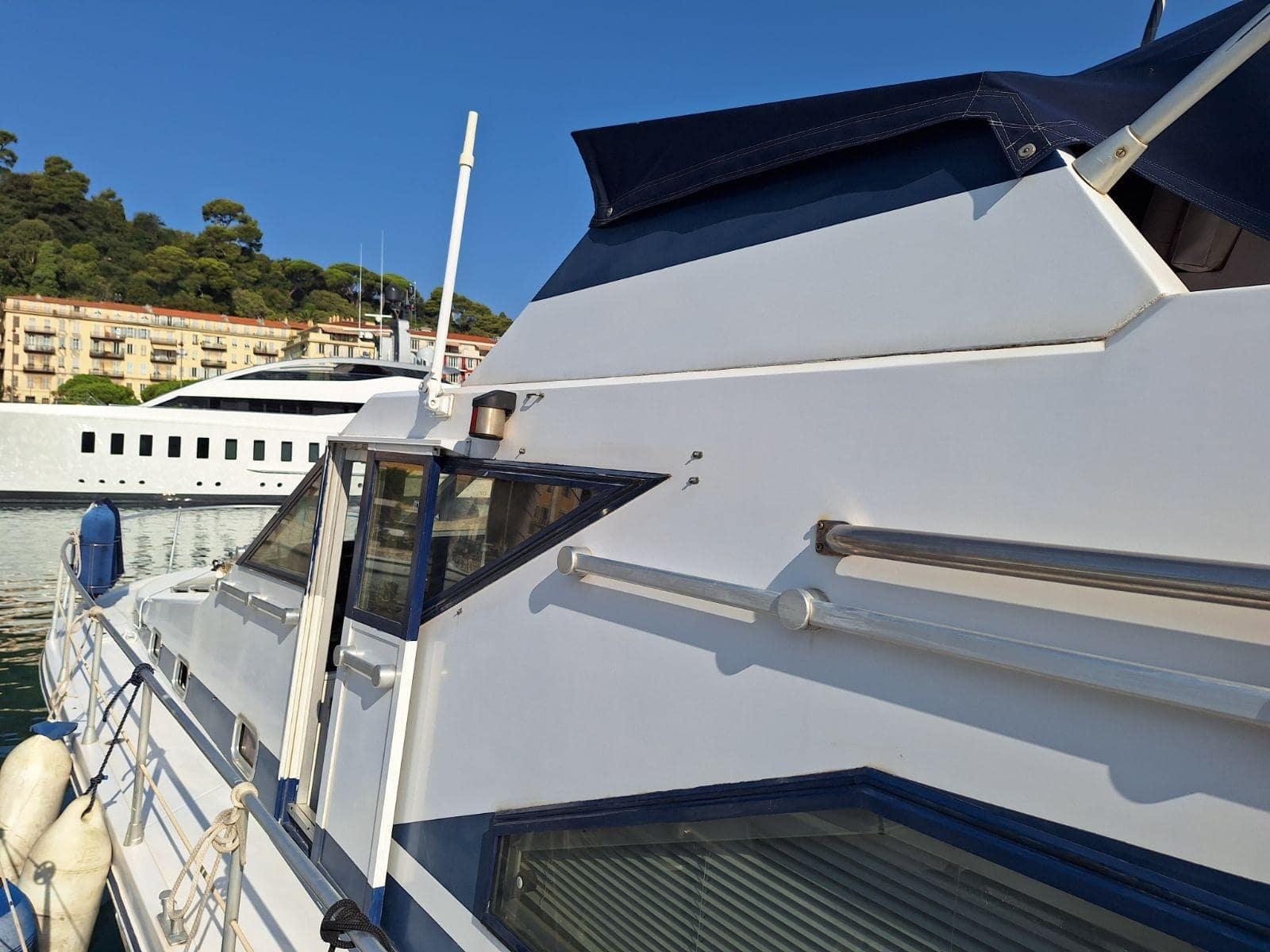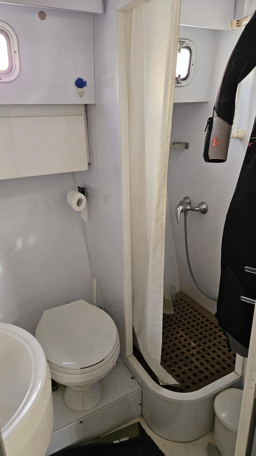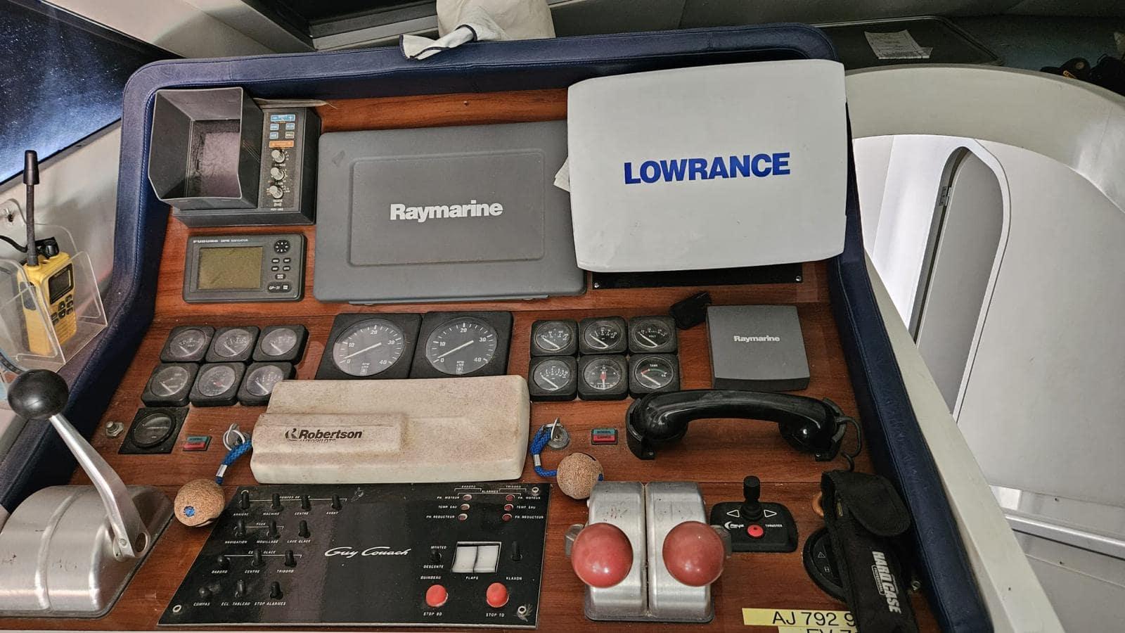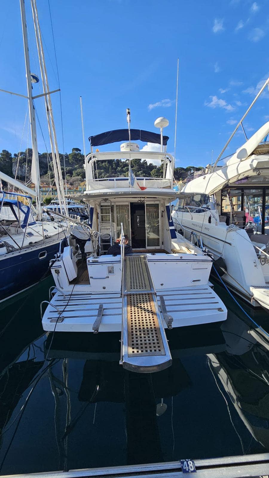 Equipped with watermaker, KOHLER generator, hydraulic gangway, aft platform, compressor for inflating bottles, sun cover, depth sounder, chart plotter, fully equipped galley...