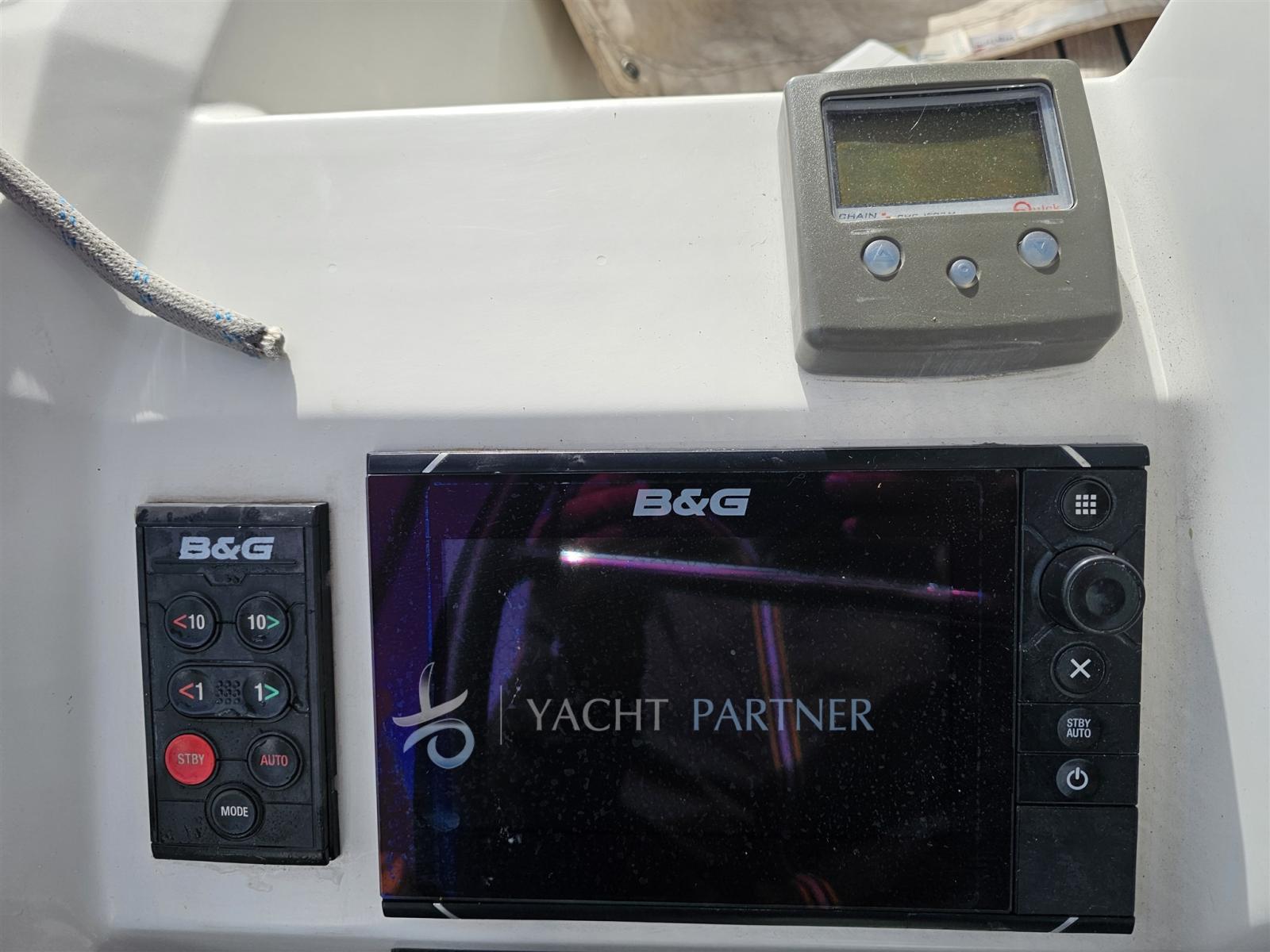 Radar Antenna (B&G), Chain counter (in pozzetto), Odometer (B&G), DSC vhf (B&G in sostituzione 2025), Depth Sounder (B&G), Autopilot (B&G), Plotter with GPS antenna (B&G touchscreen, in sostituzione 2025), Wind Station (B&G).