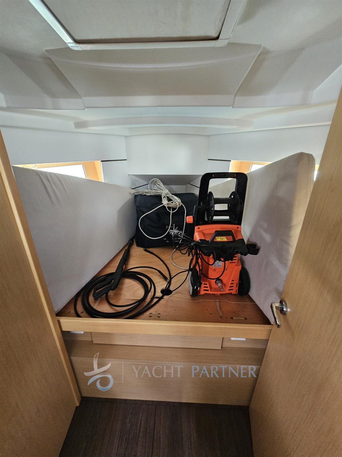 Engine Alarm, Water pressure pump, 4 Batteries (sostituite 2022), Deck Shower (con miscelatore), Gangway (in carbonio), Platform (abbattibile), Manual Bilge Pump, Teak Cockpit, Shorepower connector, Rollbar, Electric Windlass, Strand rigging, swimming ladder, Outboard Engine Support Bracket, cockpit table, 4 Winch, Windex.
