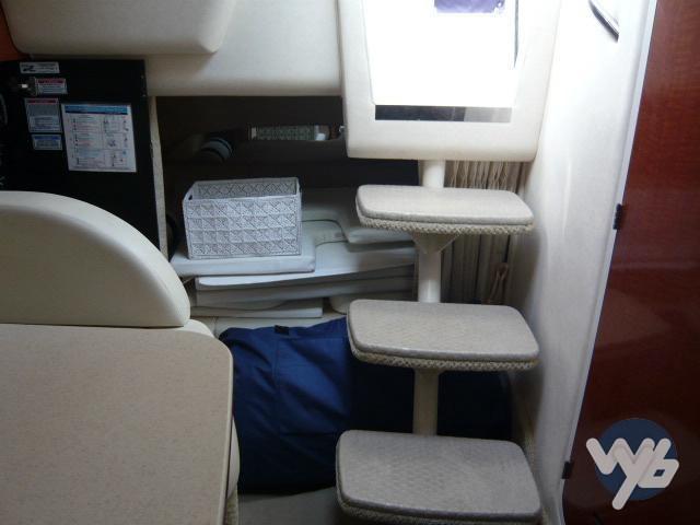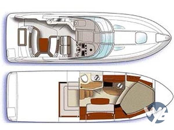Boat from the American shipyard, elegant, fast and safe. Large cockpit with seats that can be converted into sundecks. Rational driver's position and passenger seat. Stern swim platform. Very practical walkways for access to the sundeck at the bow. Open space interiors, mid-boat dinette to separate the two sleeping areas.
