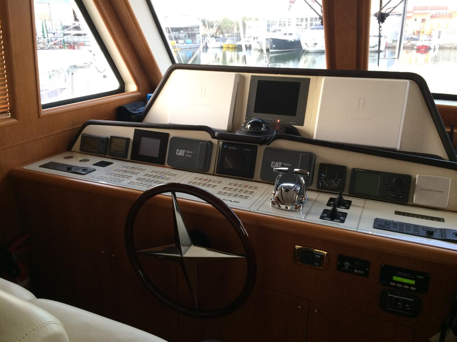 HELM ORDERS UPPER DECK, AND ON BOTH DECKS OF THE FLY, MORE PORTABLE JOYSTICK. CABINS AND SALON WITH LED LIGHTS ON THE CEILING.
