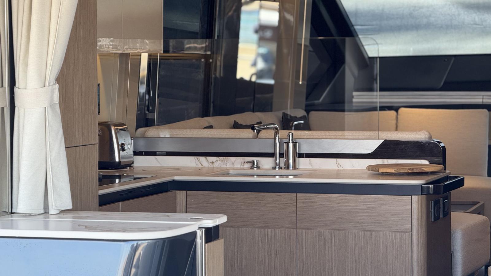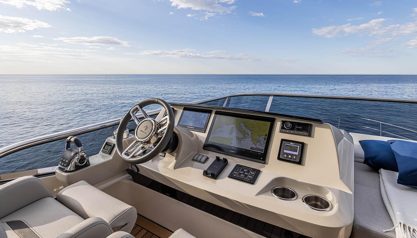 XXL flybridge with lounge area, outdoor bar & ergonomic helm station