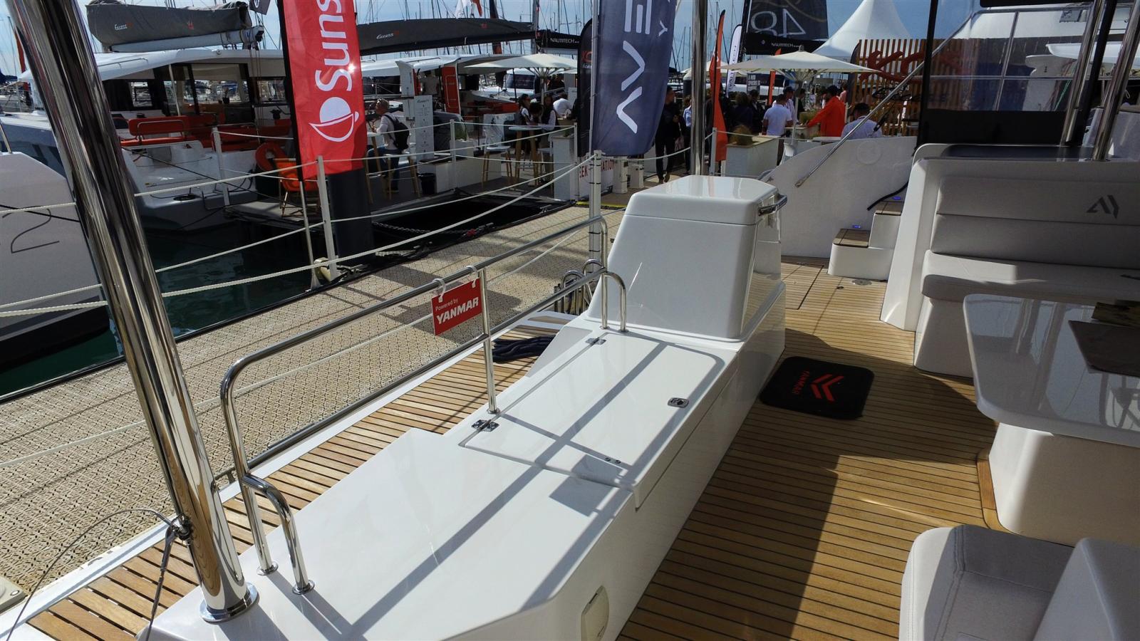 Engine Alarm, Anchor (Spade26kg et 50m de chaine de 10), Water pressure pump, 3 Batteries (330amp service AGM), Deck Shower (froide et chaude), Courtesy Lights (intérieur et extérieur), 3 Solar panels (X 100W), Platform (électrique finition teck), Automatic Bilge Pump, Manual Bilge Pump, Teak Cockpit (et fly), Shorepower connector, Electric Windlass, Strand rigging, swimming ladder, cockpit table (et salon avant), Living Room Foldable Table (2 couchages), Winch, Windex.