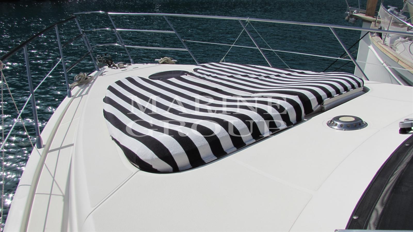 Engine Alarm, Water pressure pump, Deck Shower, Directional Spotlight, Hydraulic Flaps, Anchor Chain Washdown, Gangway, Platform, Entry door, Teak Cockpit, Shorepower connector, Water harbor connector system, Rollbar, Electric Windlass, swimming ladder, Saddles for tender, cockpit table, Horn, 2 Stern Winches.