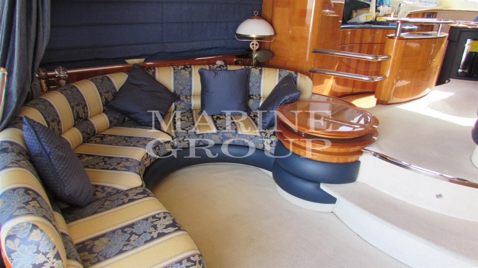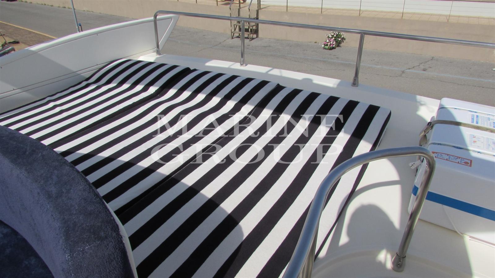 Speakers, Satellite TV Antenna, Air Conditioning, Bimini (Fly), Boiler, Reversible Air Conditioning, Freezer, Complete Cushions, Stern Cushions, Bow Cushions, Flybridge Cushions, Cockpit Cushions, External Refrigerator (Fly), Internal Refrigerator, TV System, Microwave, Blinds, Electric Hotplate, 12v Internal Sockets, 220v Internal Sockets, AM/FM Radio, Black Water Tank, Stereo, Console Cover, Awning, 2 TV, VHS, Mosquito Nets, Engine Alarm, Radar antenna, Autoclave, Battery charger, Electronic engine control, Chain meter counter, Odometer, Deck shower, Bow thruster, Adjustable headlight, Hydraulic flaps, Chain washing, Gangway, Platform, Entrance door, Teak cockpit, 220V quay socket, Quay water intake, Rollbar, Electric windlass, Swim ladder, Tender seats, Cockpit table, Trumpet, 2 Stern mooring winch