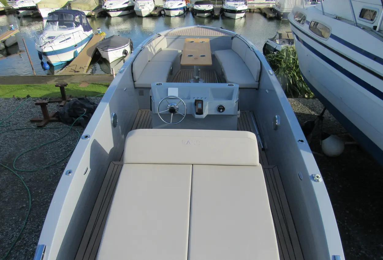 2021 model Rand Mana 23 ELECTRIC powered with Torqeedo Cruise 4.0 FP. One owner from new in excellent condition. The spacious layout provides ample seating as well as freedom to move and great functionality and the all important fridge. This model has had one owner from new, received a full valet January 2025. Lying out of the water in Chertsey.