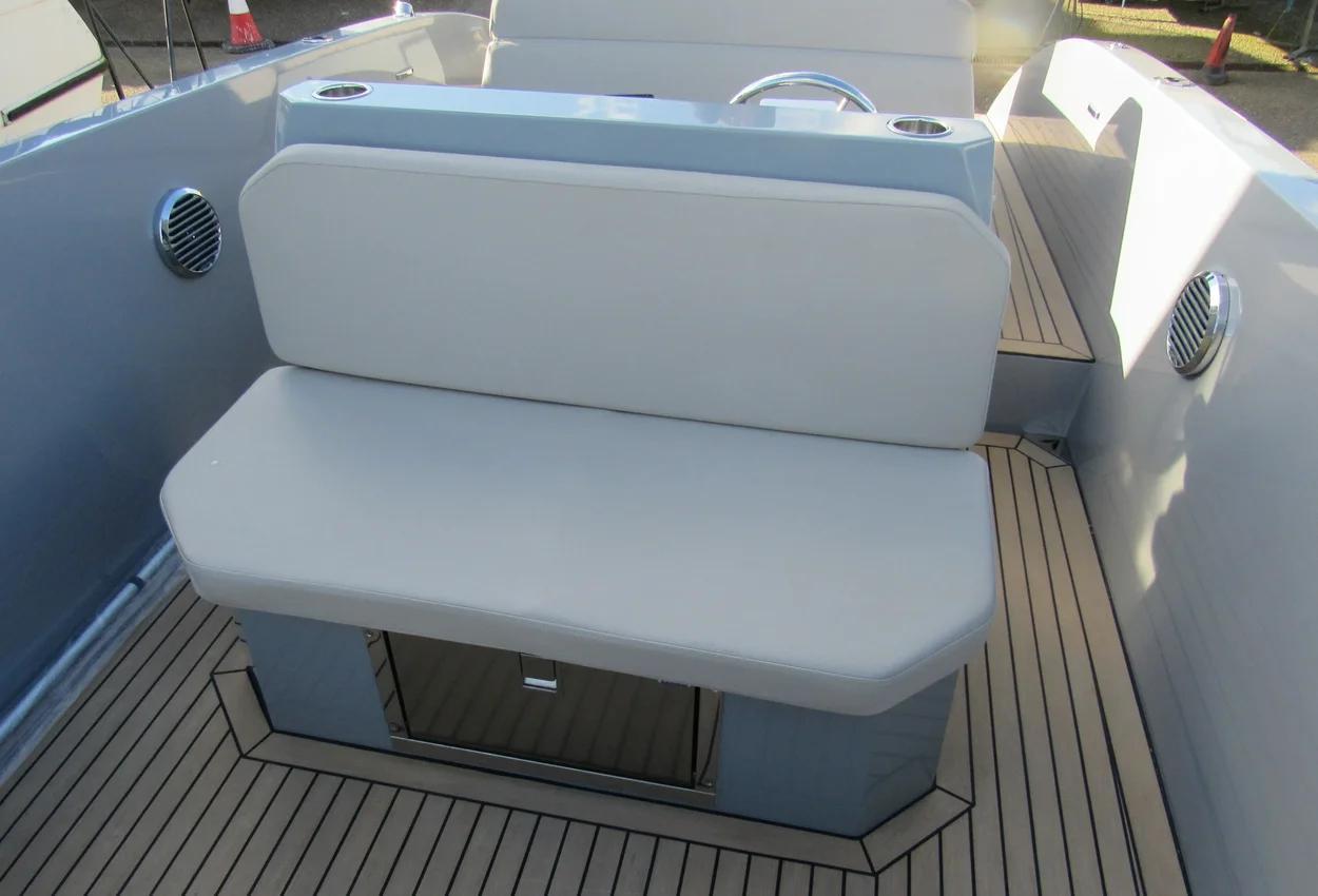 The highly functional and simple steering console is laid out for intuitive use and has been designed to create an engaging driving experience with its ergonomic proportions. The special design of the captain's seat integrated into the engine room hatch means that there is storage and access right at the helm.