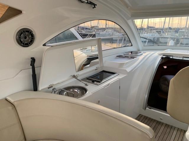 It has a bow thruster, a full closing cover, a Raymarine electronic pack including GPS, autopilot and radar.