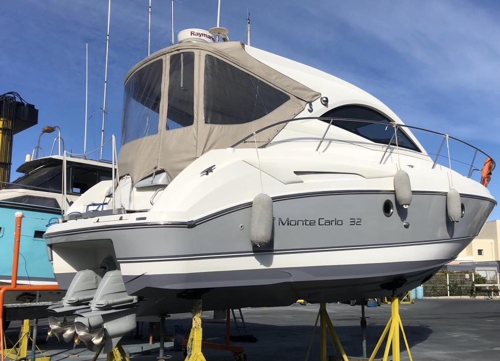 BENETEAU MONTE CARLO 32 from 2009, in Hard Top version, powered by 2 x 190hp Volvo D3. The starboard engines from origin and the port engine is new from Volvo factory (0h) from 2025.