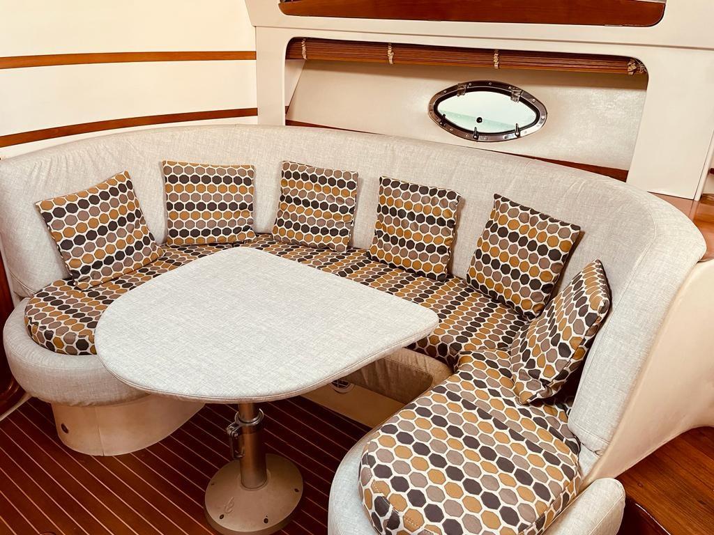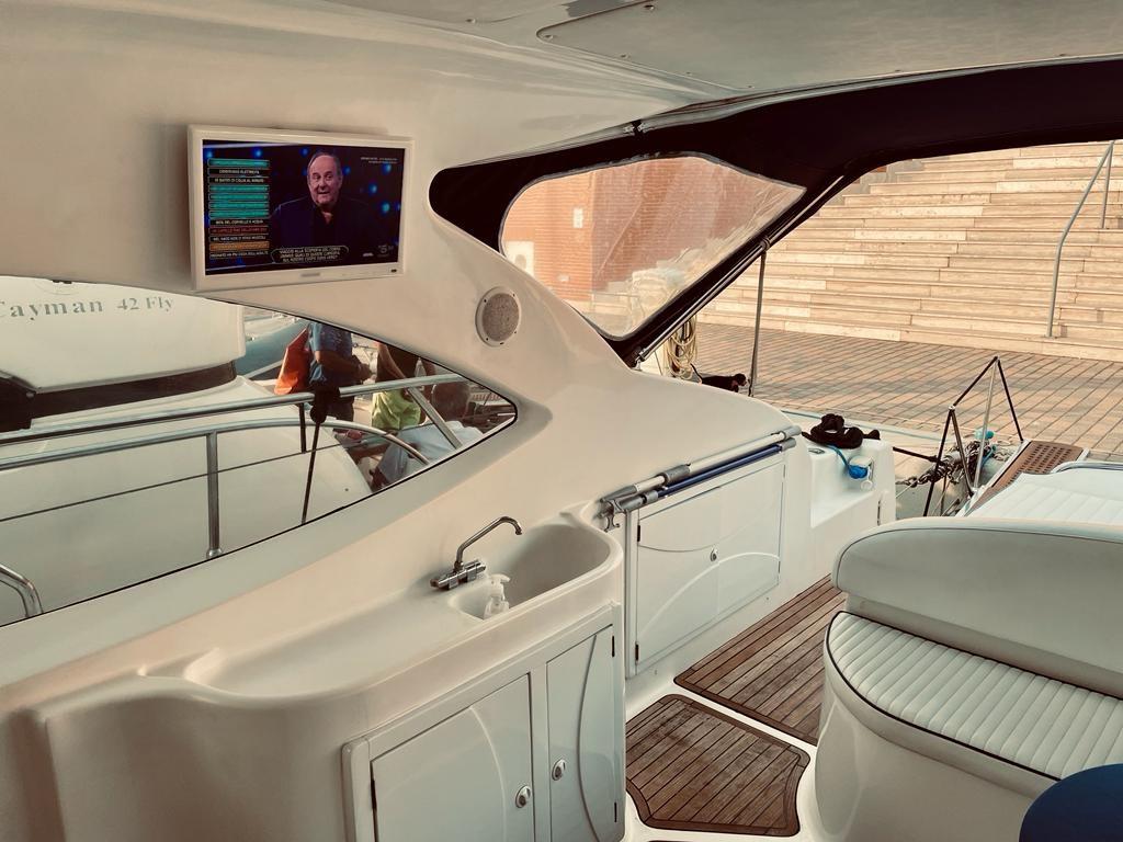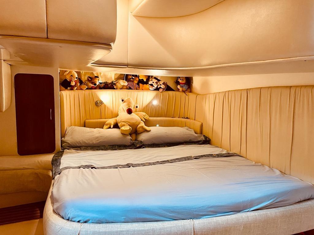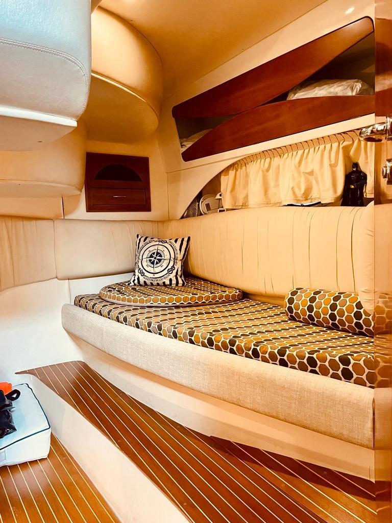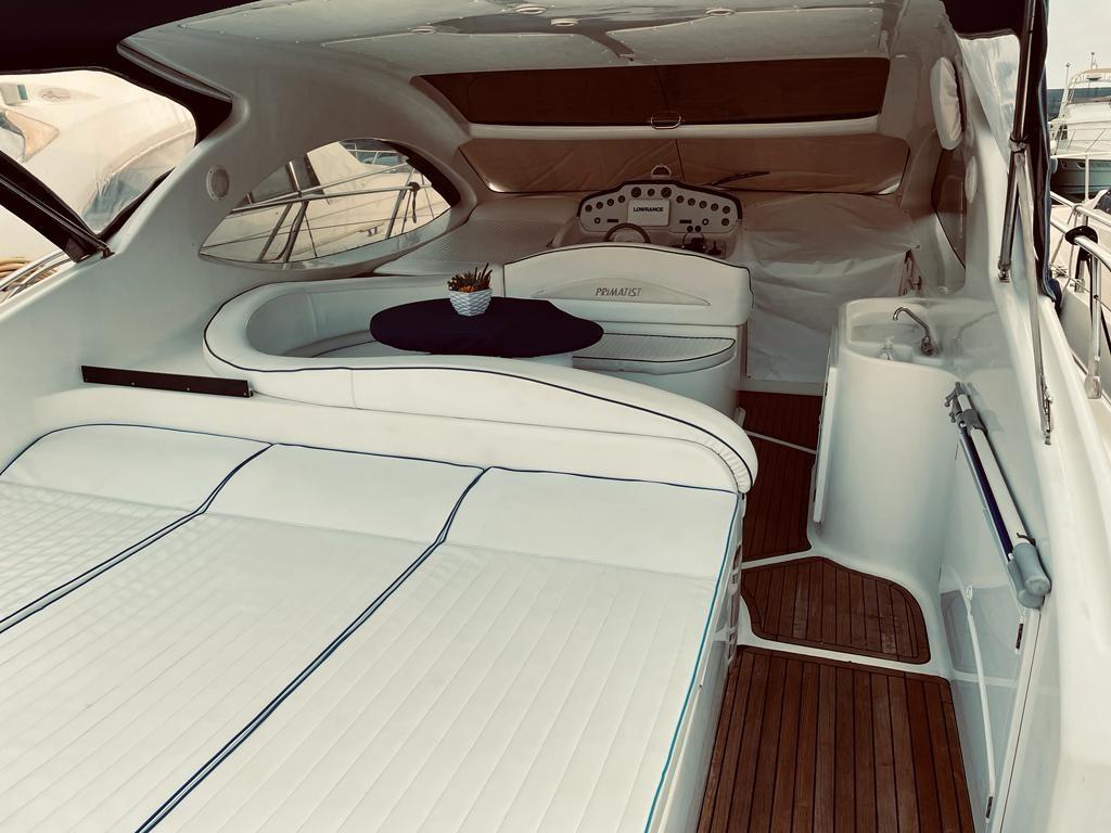Record holders G41 of 2003 with two Volvo Penta Kad 300 of 285hp with 1050 hours motorcycles double cabin in the bow with its own bathroom, central cabin with double bed plus sunbed and second bathroom. Dinette with equipped kitchen. 2022 zero hull, non-slip for the sidewalks, deckhouse polishing. Hard top film. added underwater lights, glass films, tank treatment, new gangway remote controls, new bow thruster control, new fuel gauges, new depth gauge, new control panel, new LED lights and switches, new interior upholstery, overhauled sanitary systems, new induction hob, new steps, new car radio, new TV system, outdoor tv complete service, turbo compressors replaced, volumetric compressors replaced, electrical wiring replaced engines, Air conditioning accessories, hot, cold, generator, safe, .2024, polished the hull, replaced two duo prop propellers, replaced a bilge pump, and renewed the liferaft board. engine room anti-rumble. Antifouling New, 2025 storage and maintenance stern drives
