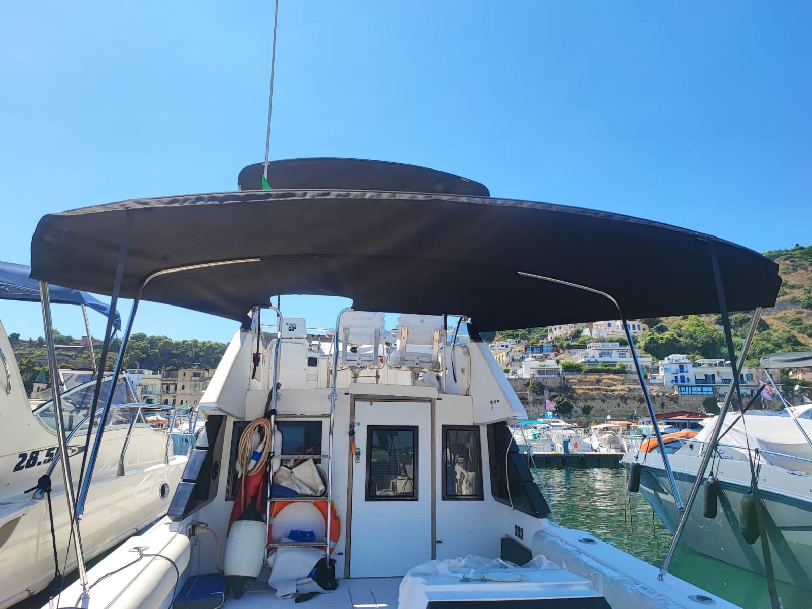 Number of engines 2 pot. Tot.464cv type inboard VOLVO PENTA 232cv CAD42 Fuel Diesel Engine hours 900 Tanks carb. 3 tot 900L Ladder besenzoni Kitchen two electric burners and alcohol WORKS PERFORMED 2023: Awning complete the whole hull plus the flay including steel.