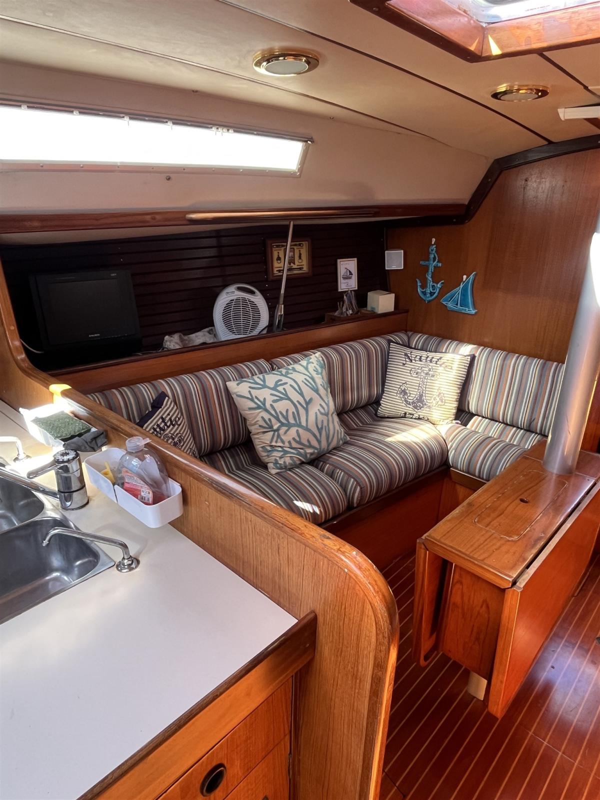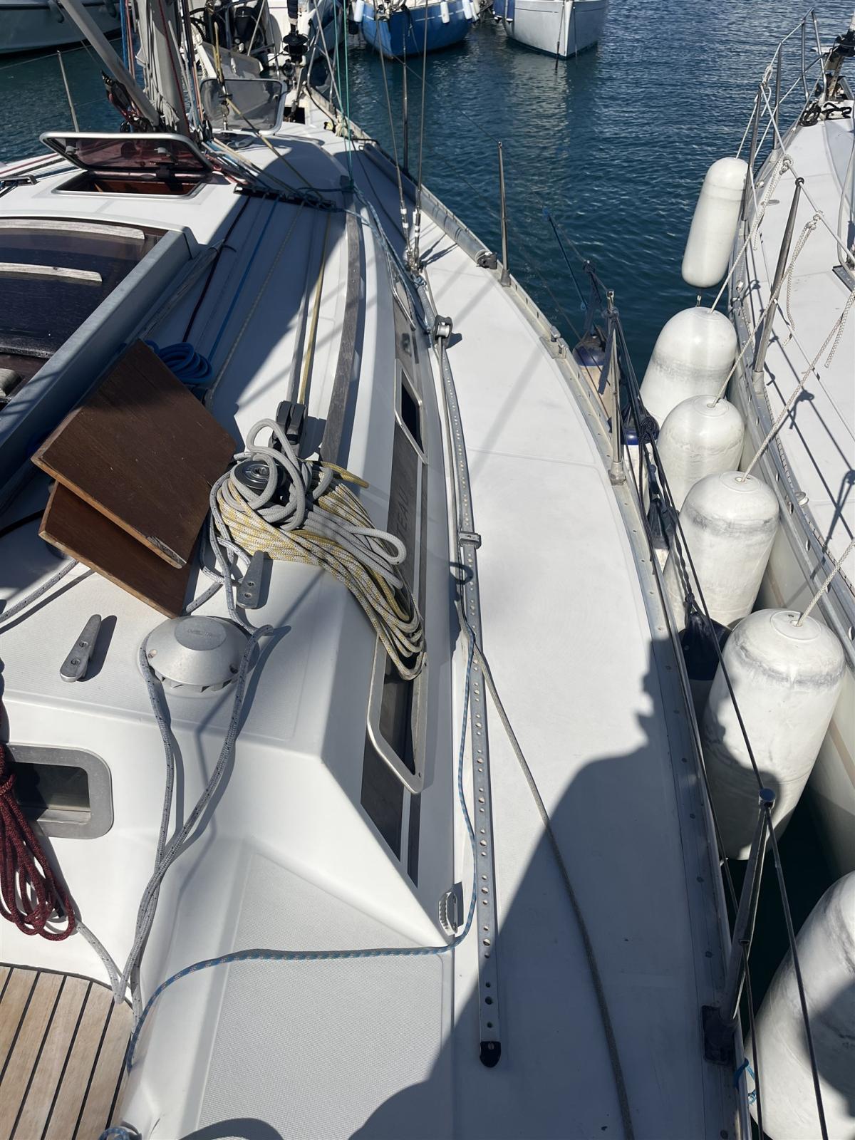 Engine Alarm, Water pressure pump, Deck Shower, Gangway, Platform, Teak Cockpit, Shorepower connector, Electric Windlass, Strand rigging (sostituito 2023), swimming ladder, cockpit table, Windex.