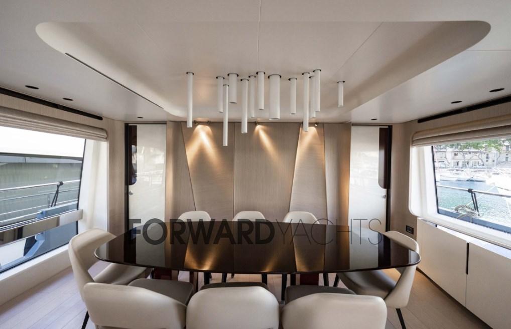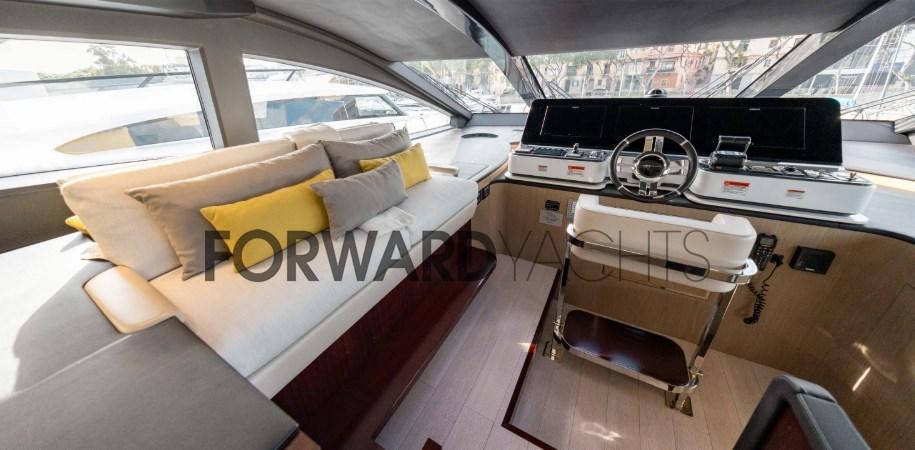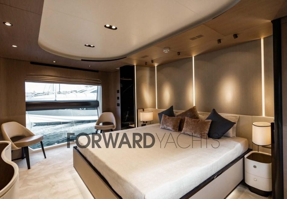 The boat offers 5 cabins for 10 guests with a master cabin on the main deck and going below deck two double and two twin cabins; all with private bathroom. This Azimut 27 Grande is equipped with 2 x 1,900Hp MAN engines and is complete with many accessories, in particular: zero-speed stabilizers, stern thruster, hard Top fly, garage for tender, watermaker 180lt/h with control panel.
