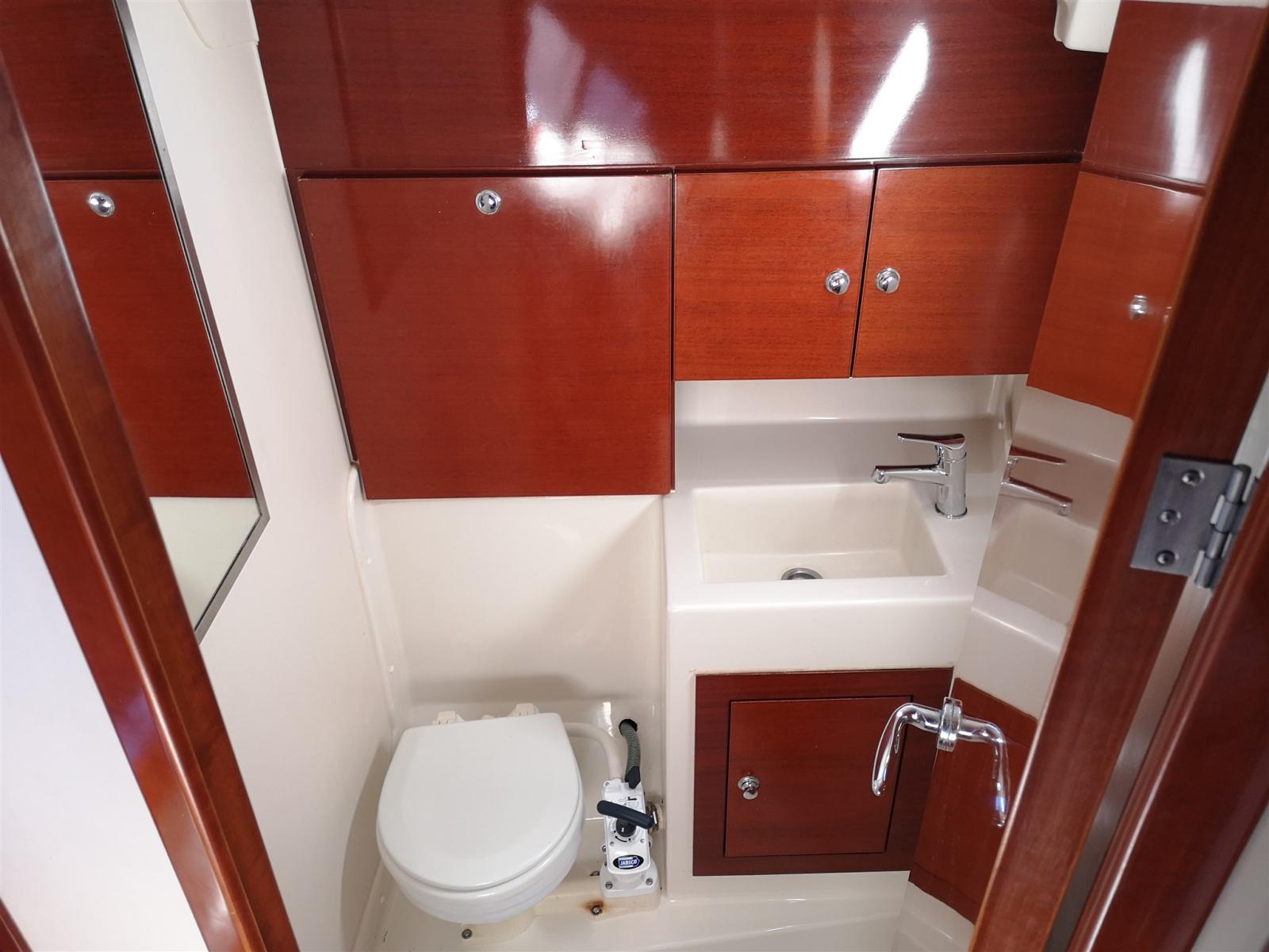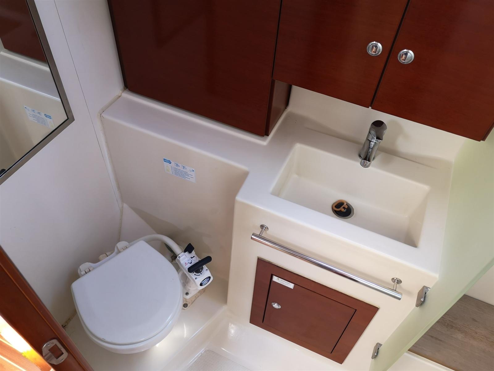 2 aft cabins with private bathroom complete with sink, manual toilet and separate shower cubicle