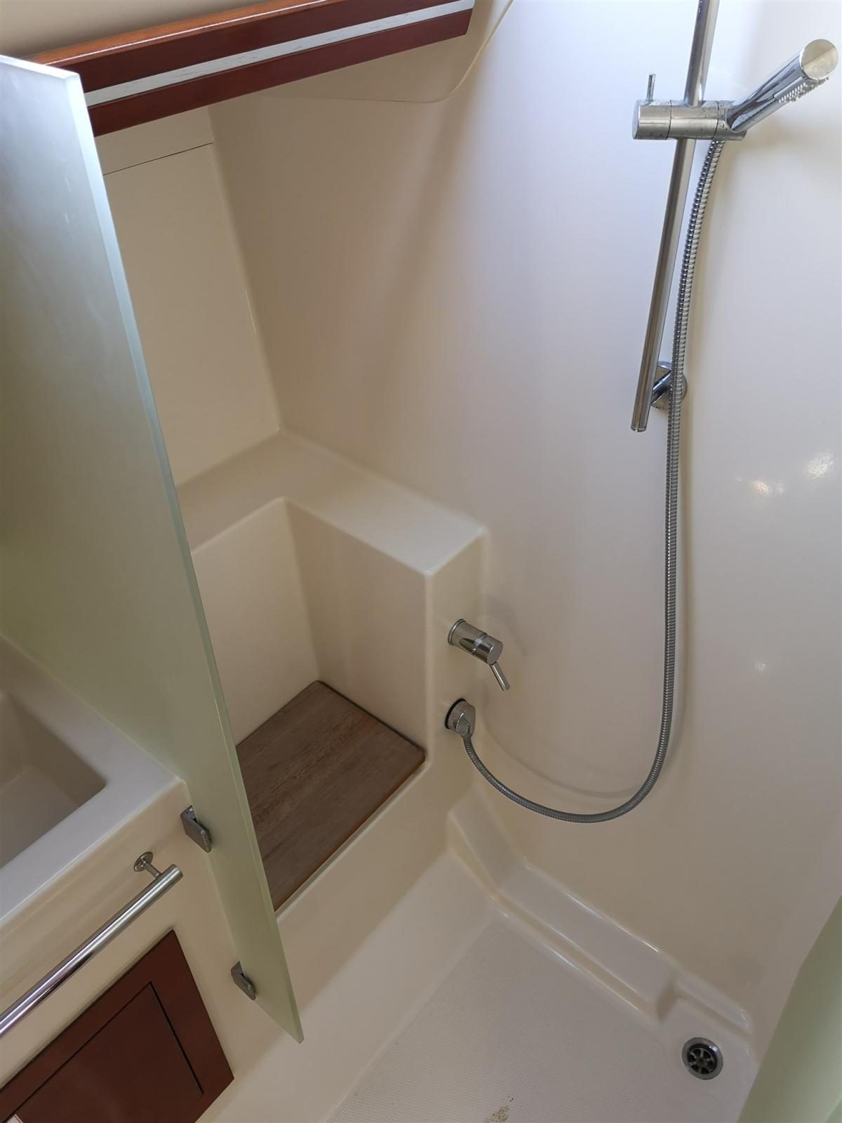 Water pressure pump, 2 Batteries, Deck Shower, Manual Bilge Pump, swimming ladder, 4 Winch.