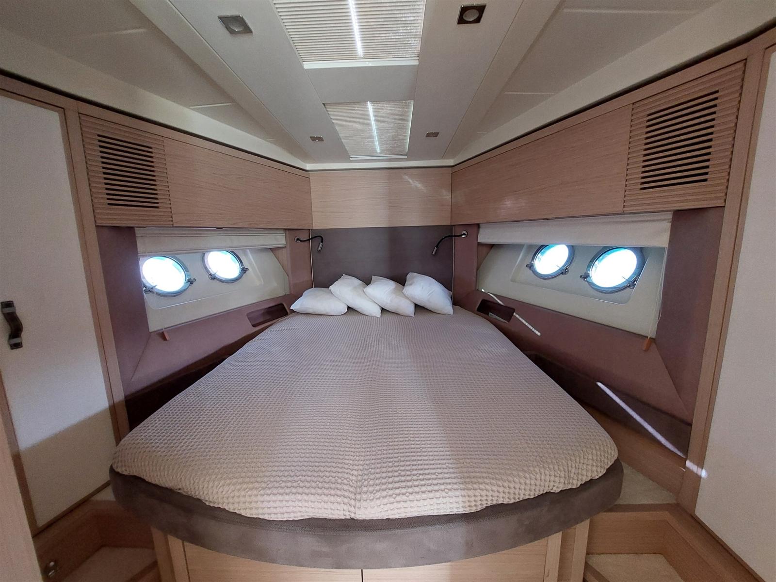 The Monte Carlo 5 distinctly embodies the premium spirit of the range. This emblematic model stands out for the elegance of its fabrics, the attention to detail and the perfectly successful Italian design. Combining its ancestral experience and the latest technologies on this unit, Beneteau has designed a motor-cruiser with values that are directly inspired by Monte Carlo Yachts. Inspired by the Mediterranean lifestyle, the Monte Carlo 5 has a unique and timeless charm. Conceived as a real place of life on board, the large shaded flybridge has a helm station, a sundeck, an outdoor kitchen as well as a large saloon to experience cruises with a taste of perfection. The refinement of the hull together with the Volvo IPS 600 engine ensures smooth, high-performance and extremely safe navigation. Transforming the main deck into a single place to live on board, the completely retractable glass door naturally unites the interior and exterior spaces. Organized with opposing seats, the saloon in the center of the dinette spreads a sweet atmosphere of elegance imbued with complicity. The three cabins and two bathrooms can comfortably accommodate 6 guests and there is great attention to detail.