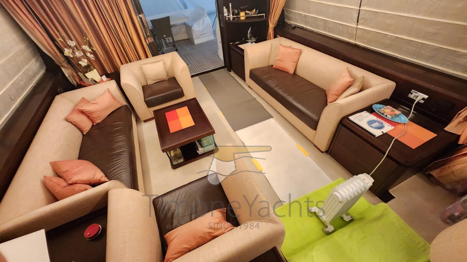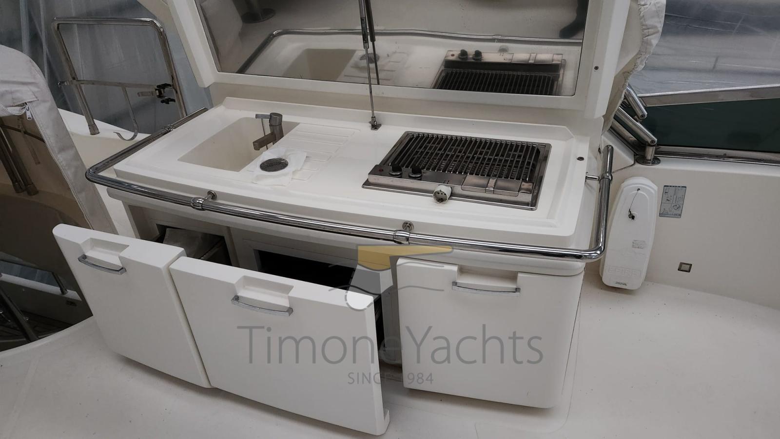Engine Alarm, Water pressure pump, Teak Side Decks, 2 Hydraulic Flaps, Davits for tender on fly, Teak Cockpit, Electric Windlass, Saddles for tender, cockpit table, Tender.