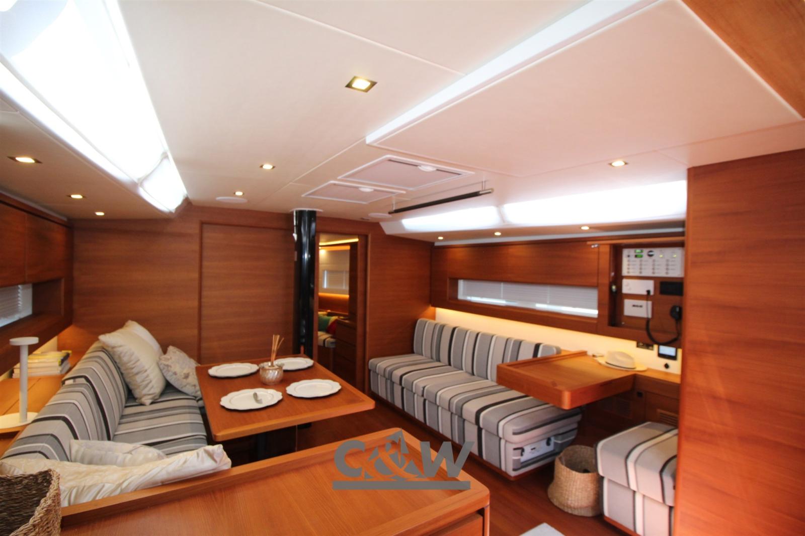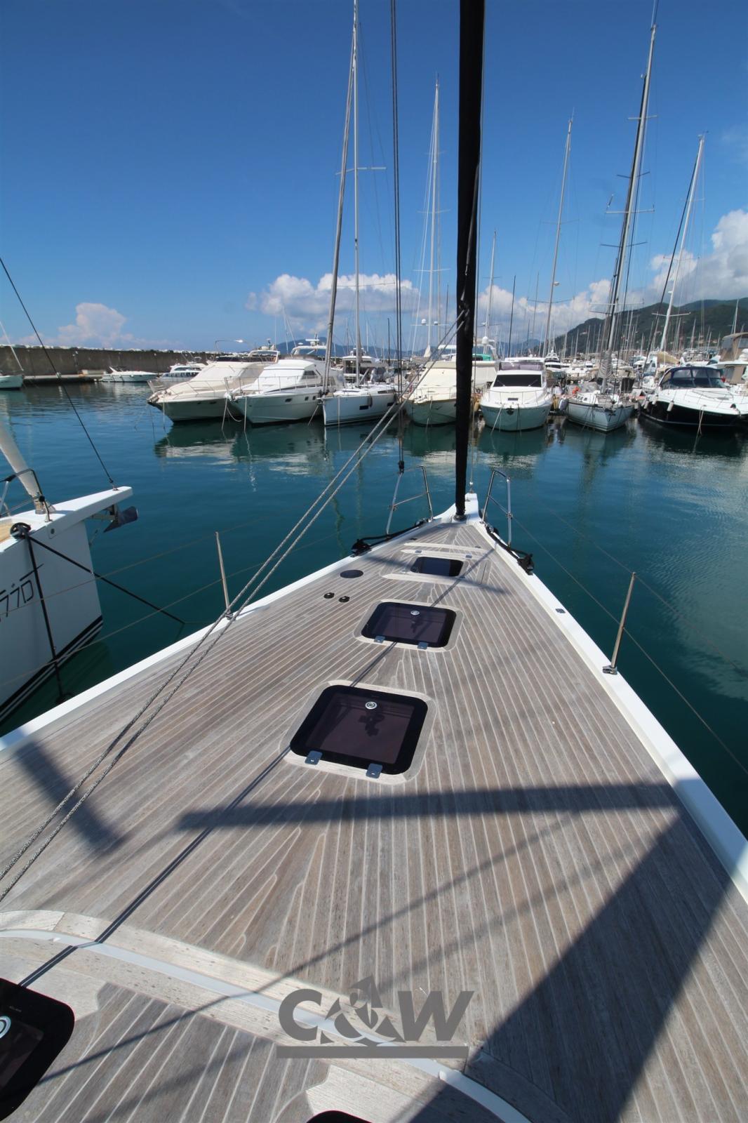 Excellent deck equipment, easy to manage sail plan with Furlerboom furling boom, North 3DI sails, B&G electronics, teak deck, teak interior, 3 cabins, 3 bathrooms, every accessory for comfort.