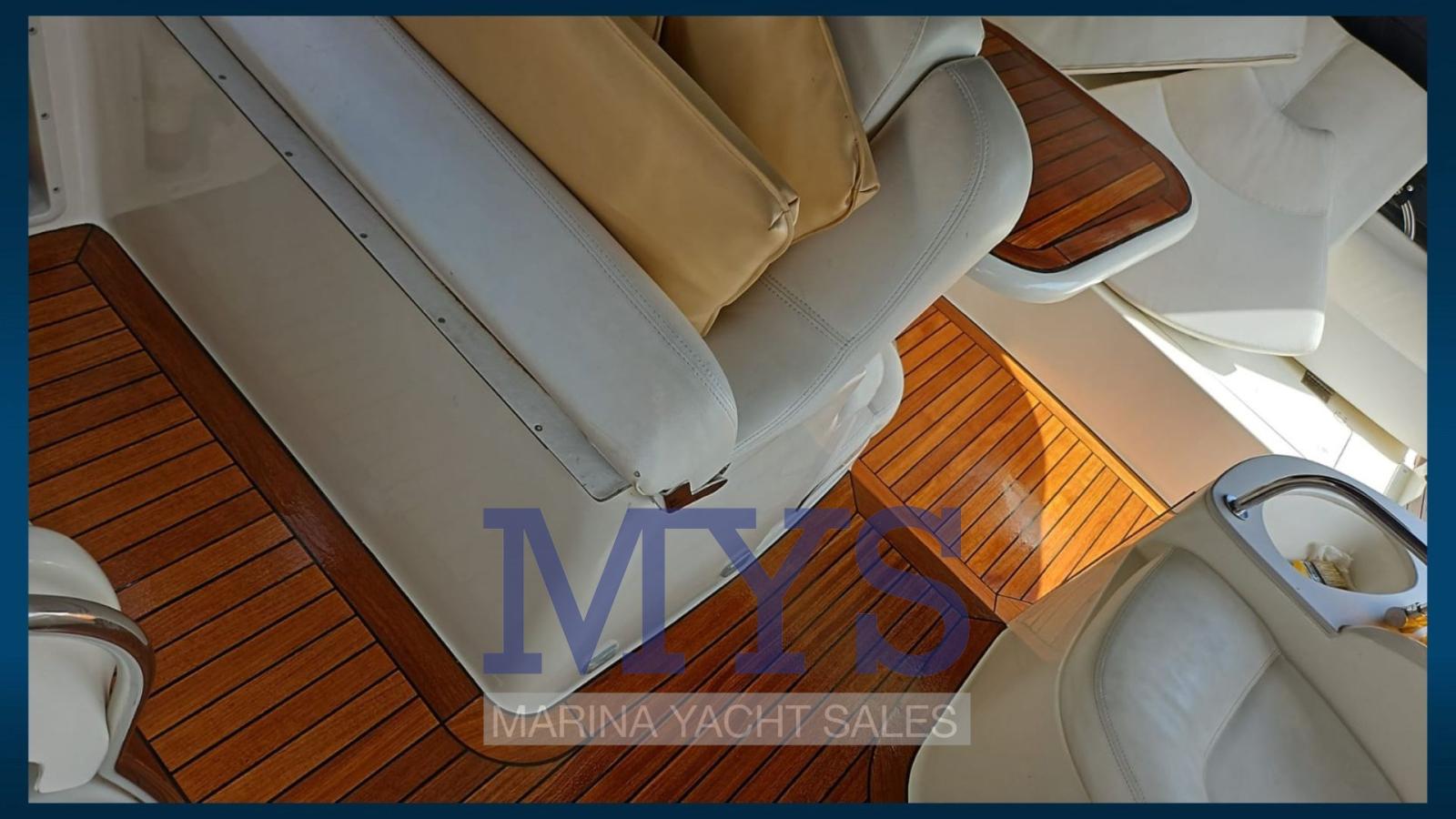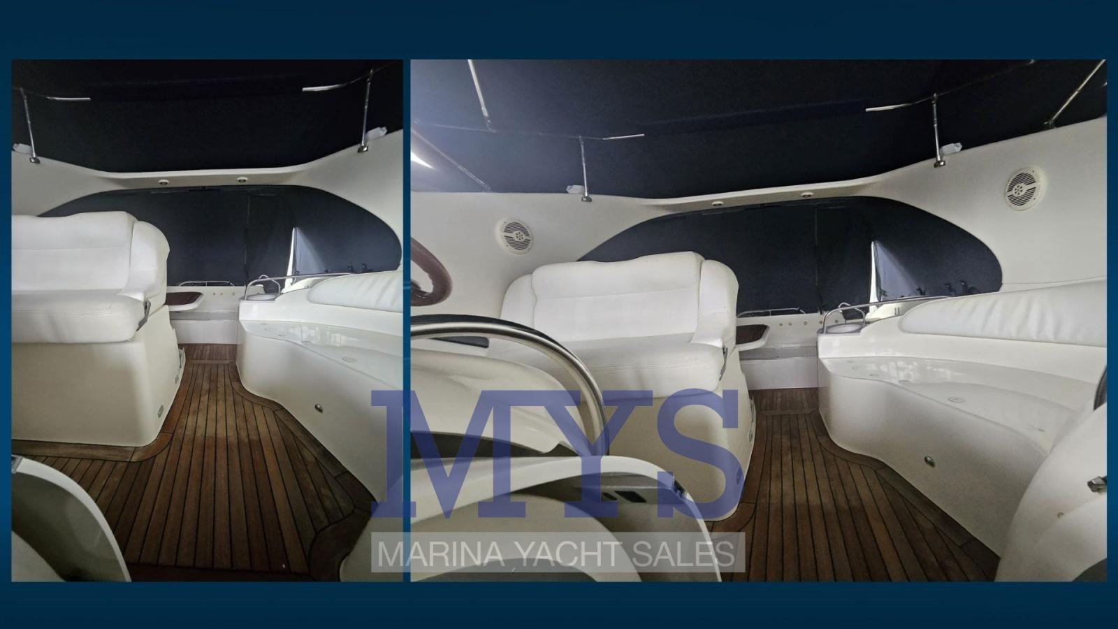 Engine Alarm, Bilge Alarm, Anchor (+ 60 mt di catena), Electric Engine Compartment Opening, Water pressure pump, Life Raft (scaduto), Auto-Trim, 5 Batteries (x 200 Ah nuove 2024), Special Colour (fascia Blu), Deck Shower, Directional Spotlight, Hydraulic Flaps, Fire Extinguishing System, Washbasin in the cockpit, Courtesy Lights, Underwater lights (Blu), Gangway (idraulica), Platform (in Teak), Automatic Bilge Pump, Manual Bilge Pump, Entry door, Teak Cockpit, Shorepower connector, Water harbor connector system, Rollbar, Electric Windlass, swimming ladder, Waste Water Purifier System, cockpit table, Living Room Foldable Table, Horn, Teak Deckhouse.
