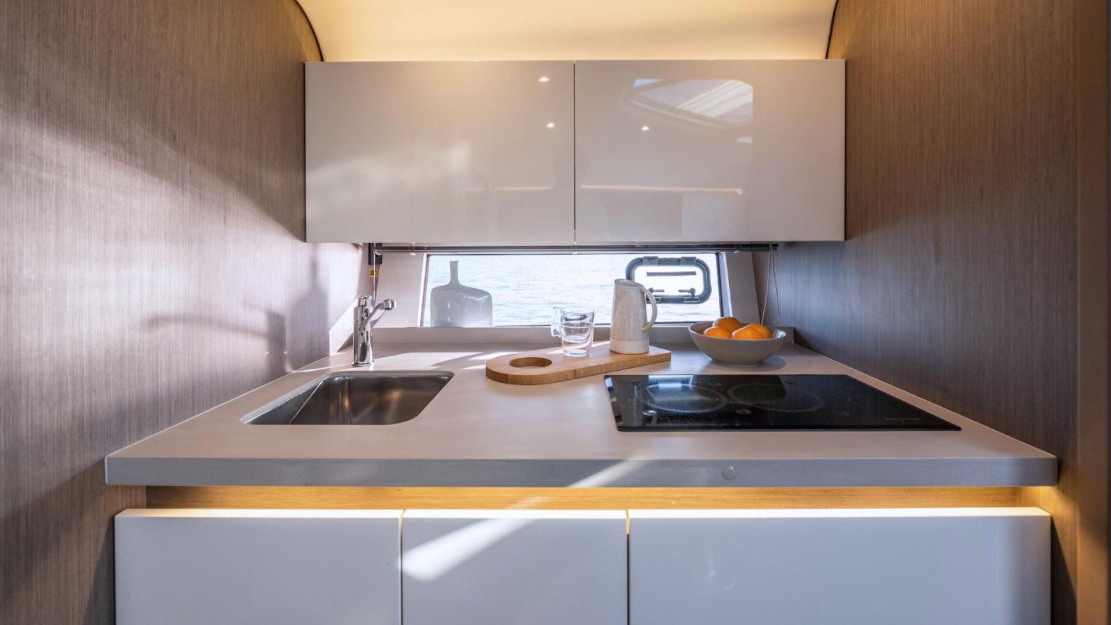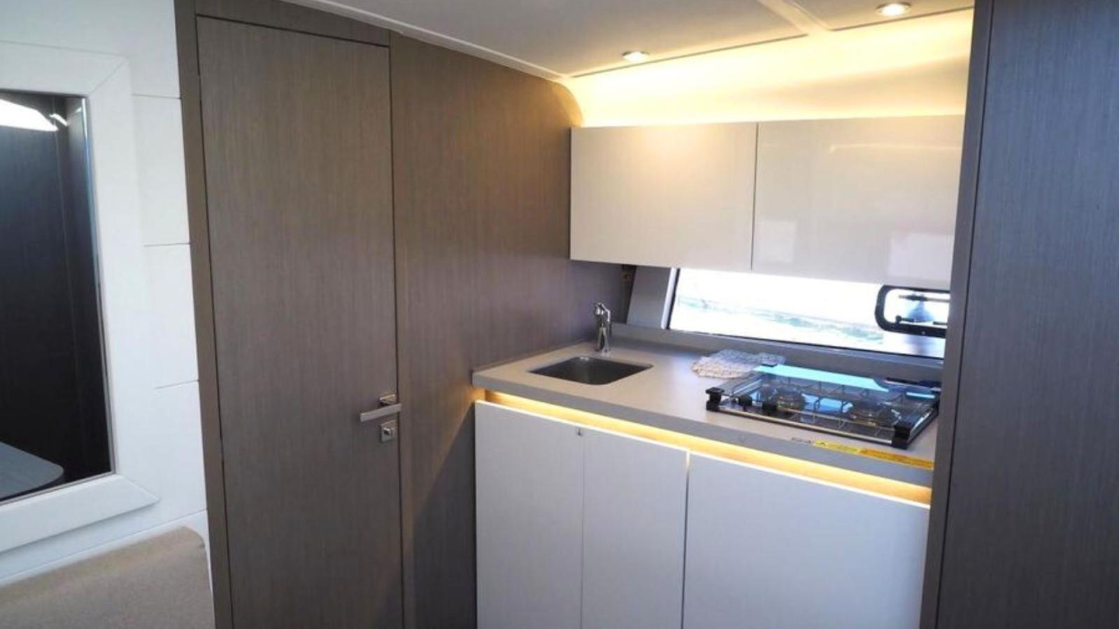 Fully equipped galley (refrigerator, cooker)