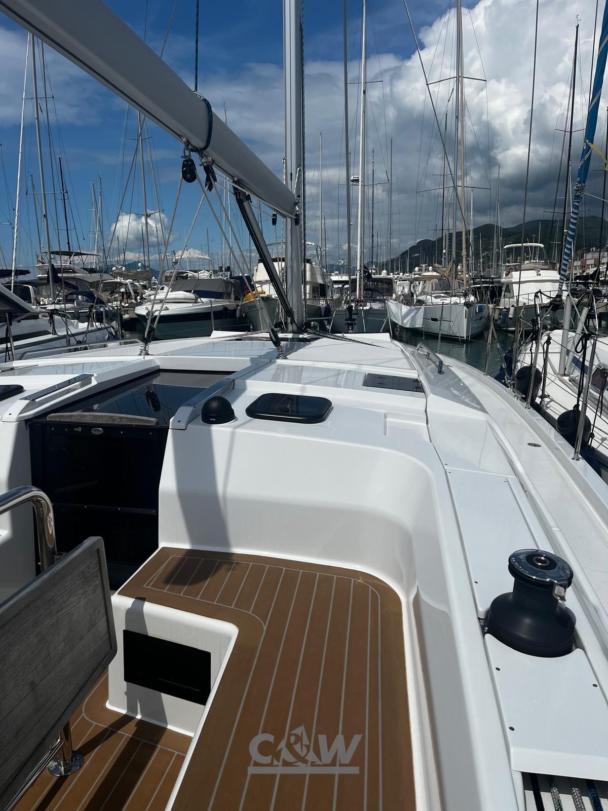 Anchor (16kg + 30m), Water pressure pump, 4 Batteries (1x90Ah motore + 2x160Ah servizi + elica di prua), Battery charger (Mastervolt 35A), Deck Shower (calda e fredda), Twin Steering, Bow Thruster (Quick con batteria dedicata), Platform, Automatic Bilge Pump, Manual Bilge Pump, Teak Cockpit (sintetico), Shorepower connector, Electric Windlass (1000W), Strand rigging, 2 cockpit table, 4 Winch (Lewmar 45 ST EVO), Windex.