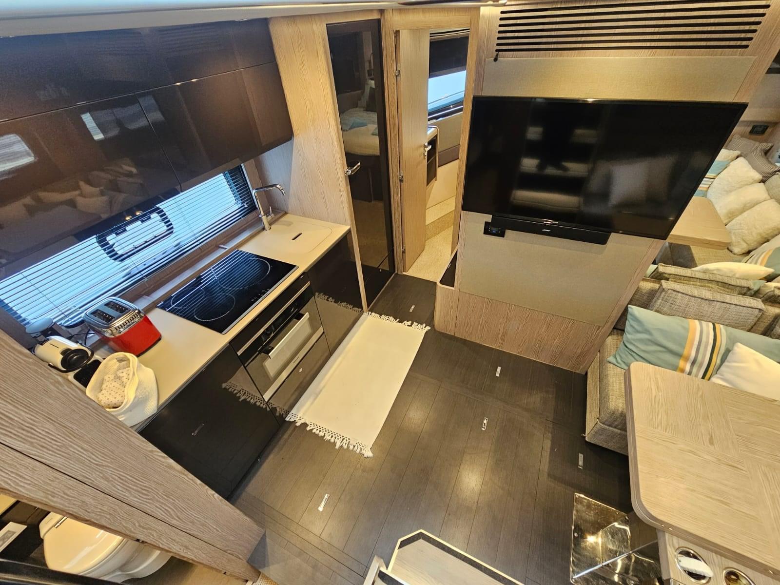 Engine Alarm, Bilge Alarm, Water pressure pump, 8 Batteries, Deck Shower, Hard top, Gangway, Platform (affondabile), Automatic Bilge Pump, Teak Cockpit, Shorepower connector, Water harbor connector system, Electric Windlass, swimming ladder, cockpit table, Stern Winches.
