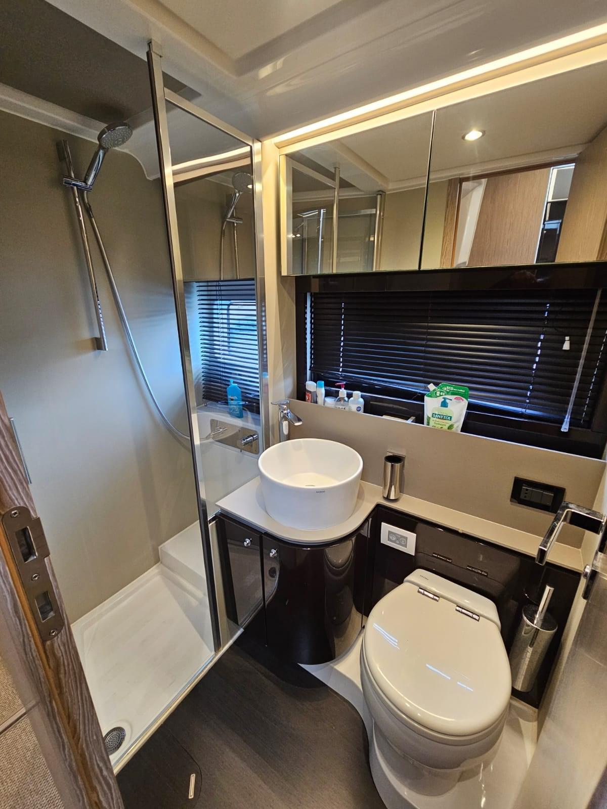 Warm Water System, Inverter Air Conditioning, Waste Water Plant, 12V Outlets, 220V Outlets, Black Water Tank, 2 Electric Toilet.