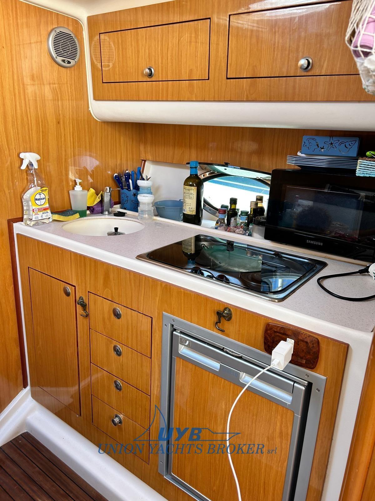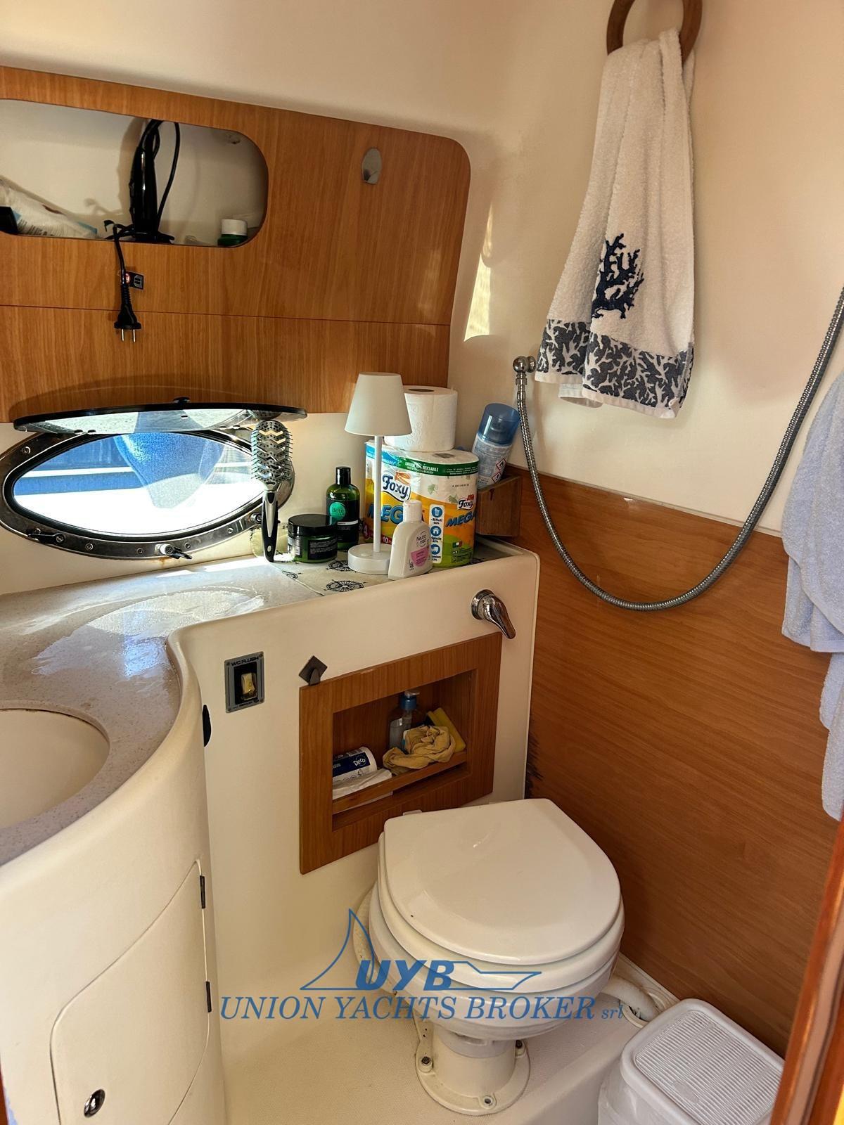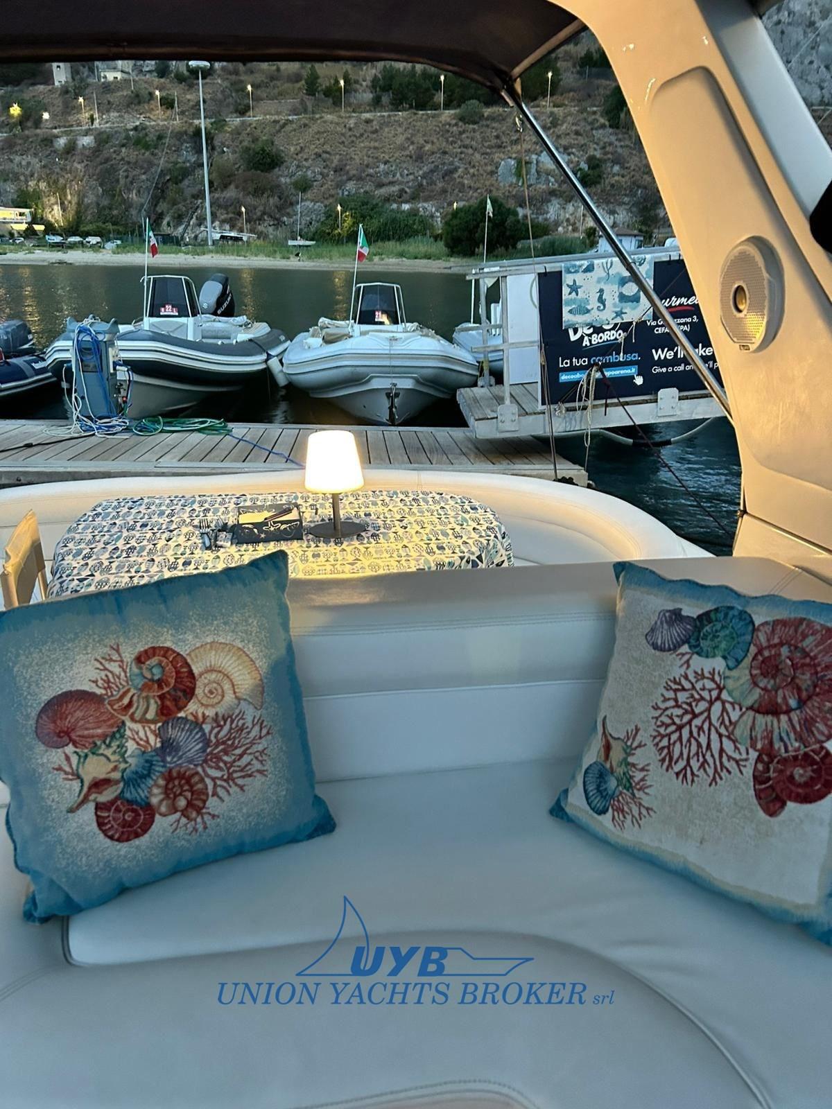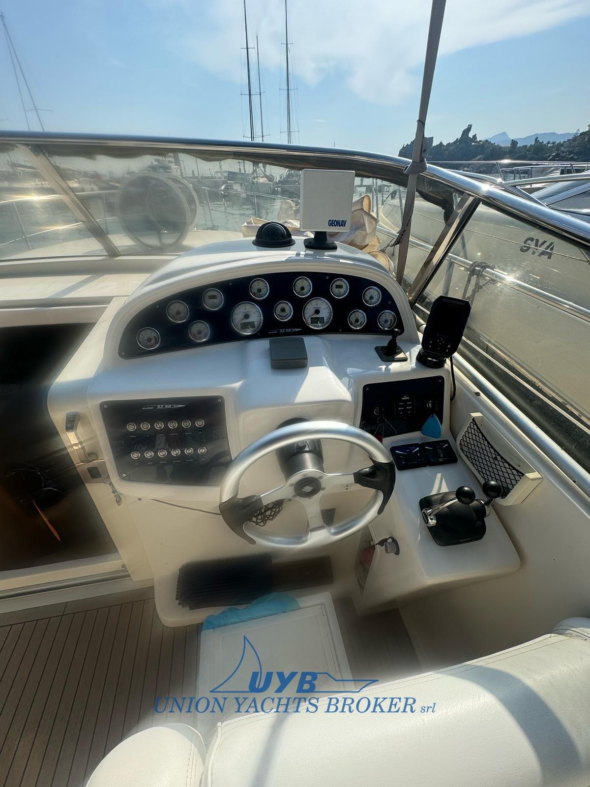 Installs: Gps/eco, electronic throttles with evc system, bow thruster, air conditioning, 220 cable with battery charger, complete cushions, complete awnings, double fridge (internal and external), sink, separate electric toilet, windlass winch with quick meter counter, electro-moved engine room door opening, boiler, full teak.