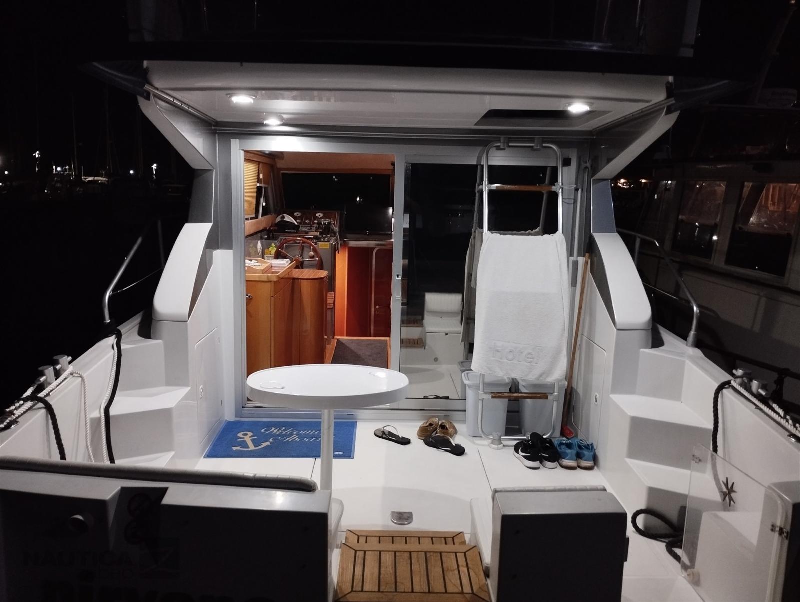Engine Alarm, 4 Batteries, Deck Shower, Twin Steering, Hydraulic Flaps, Courtesy Lights, Shorepower connector, Electric Windlass, swimming ladder, Horn.