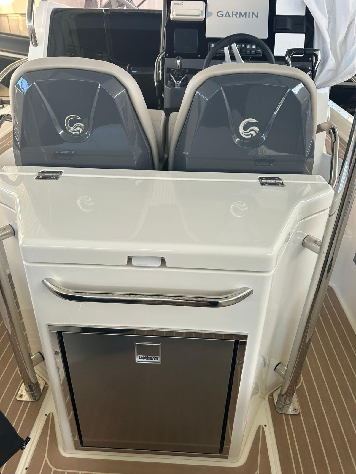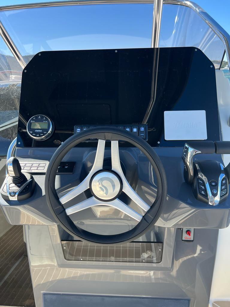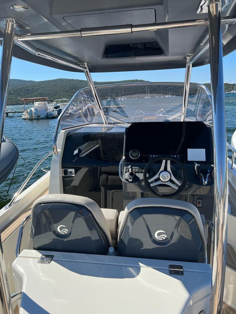 Water pressure pump, 3 Batteries, Deck Shower, Shorepower connector, Electric Windlass, swimming ladder, cockpit table, Horn, T-Top.