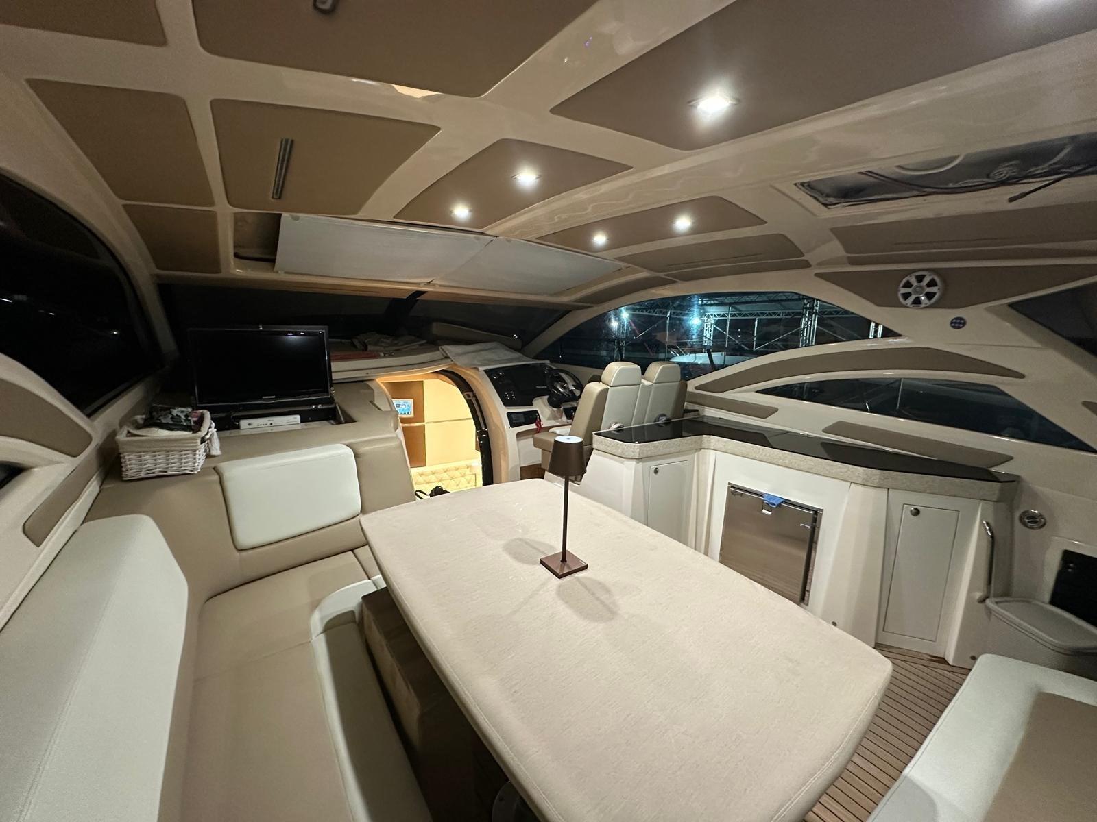 Electrically height-adjustable driver's seat, Outdoor kitchen with double ceramic hob, double sink and refrigerator, Automatic zipwake flap system (4 side and 1 central V-shaped flap), Additional engine compartment ventilation system, 70 m of 10 stainless steel chain, Additional LED light system with chromotherapy,