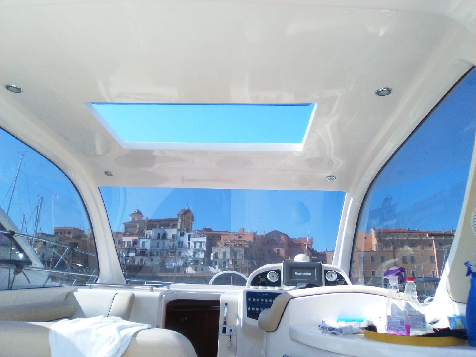 Exceptional well-maintained and equipped boat, Hard Top, elongated beach visible in Lazio, engines landed in 2023 zero hours.