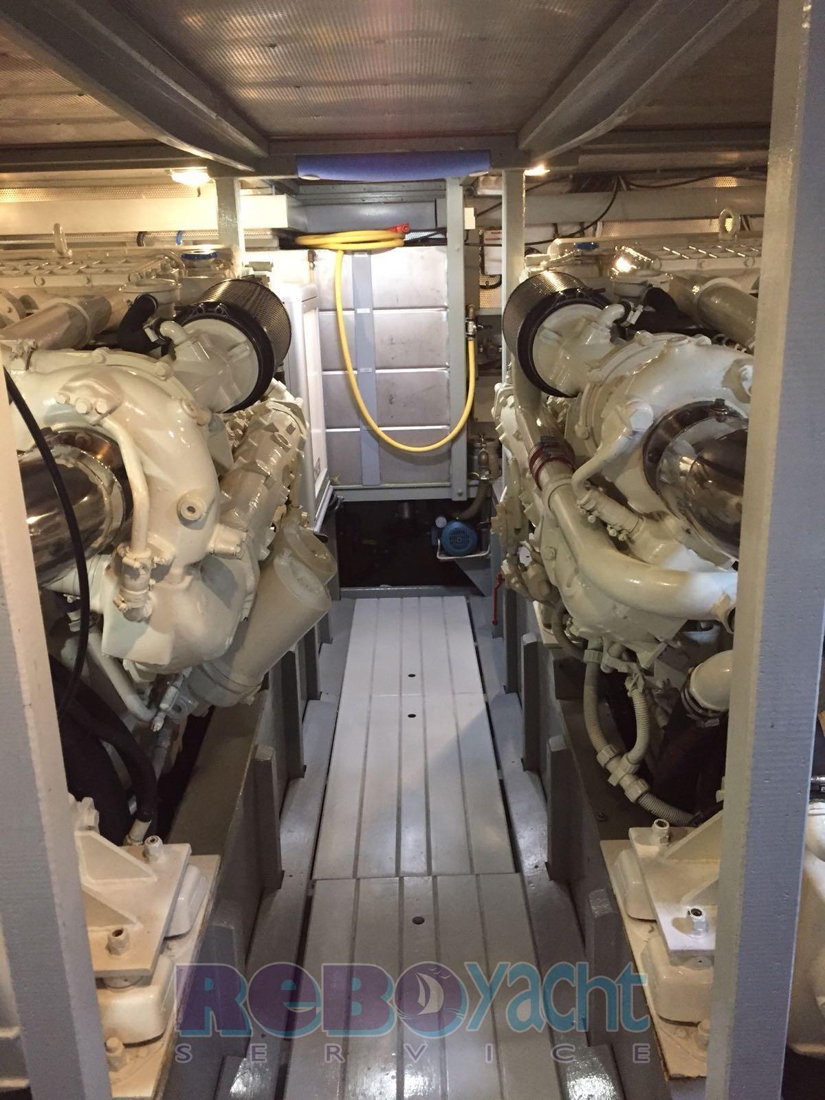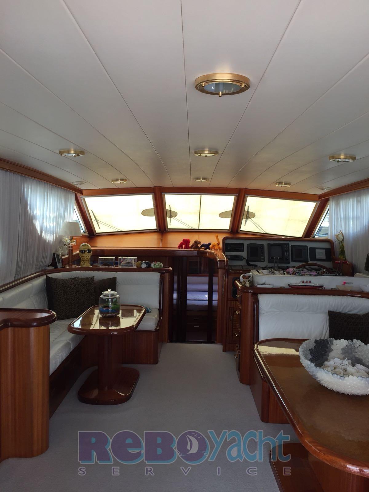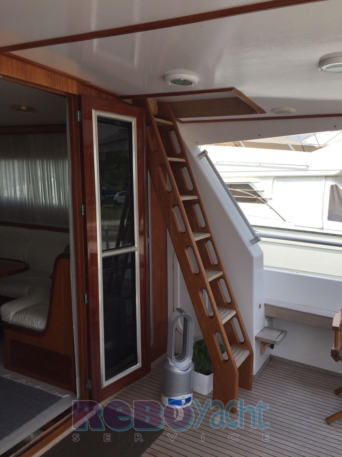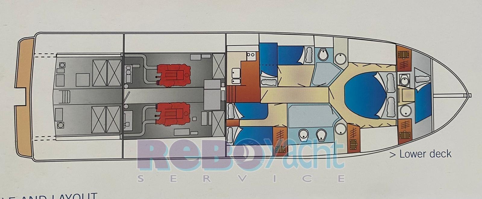Water pressure pump, Teak Side Decks, Deck Shower, Twin Steering, Hydraulic Flaps, Courtesy Lights, Gangway (idraulica), Platform, Teak Cockpit, Shorepower connector.