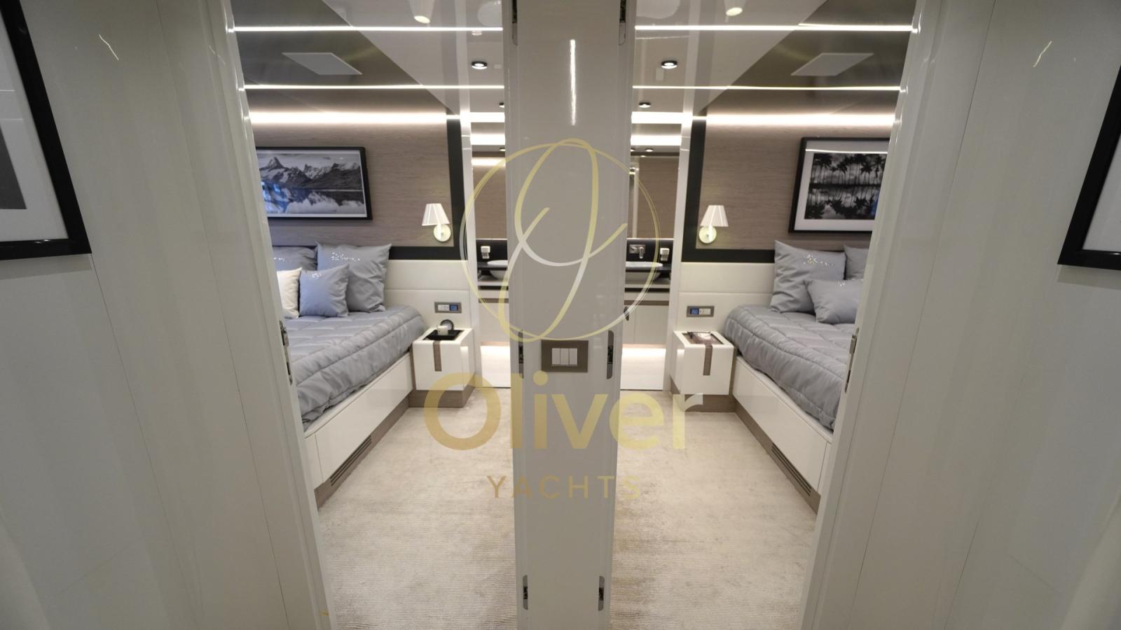 Every detail is designed to create an environment of well-being, privacy and pleasure. Climatic comfort is guaranteed by an intelligent zoned climate control system, while advanced sound insulation allows for an extremely quiet sailing experience. The centralized home automation system allows you to manage lighting, music, curtains and temperatures with a simple touch.