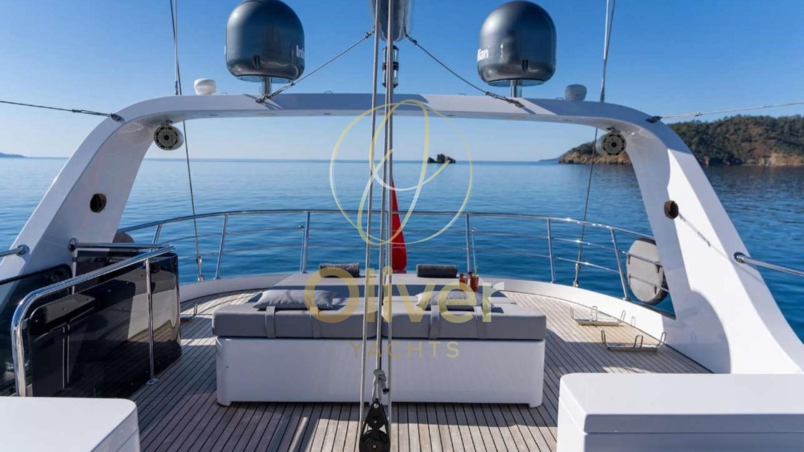 Completely refitted in 2022, it blends elegant lines, contemporary comfort and top-notch services, offering an exclusive experience designed to satisfy even the most demanding guests. On board, up to 10 guests can be accommodated in five luxurious cabins, including a spacious owner's suite, three double VIP cabins with king-size beds and a twin cabin with single beds on the floor. Each cabin has a private bathroom, air conditioning and satellite TV, ensuring relaxation, privacy and comfort at all times of your stay. The expansive outdoor spaces include an outdoor dining area, elegant sunbathing areas, a panoramic flybridge and a modern bathing platform. Numerous toys and equipment for water sports and recreational activities are also available on board.