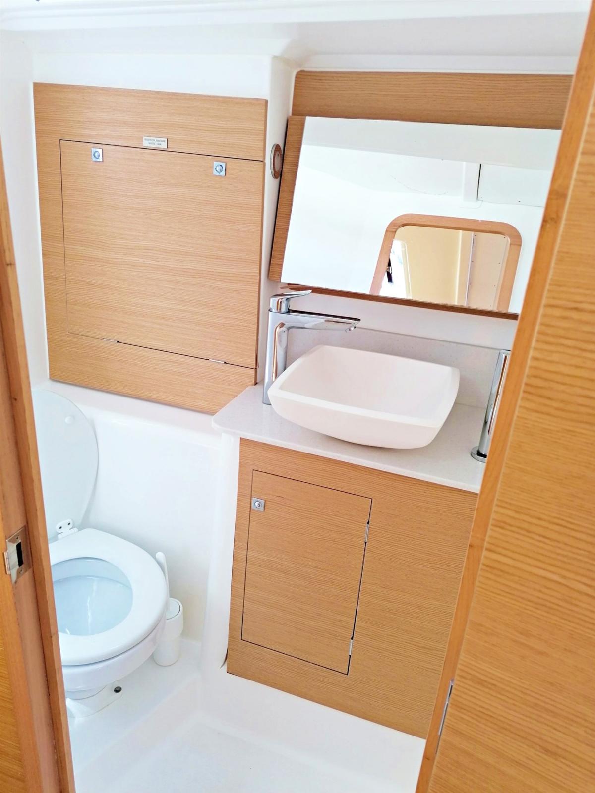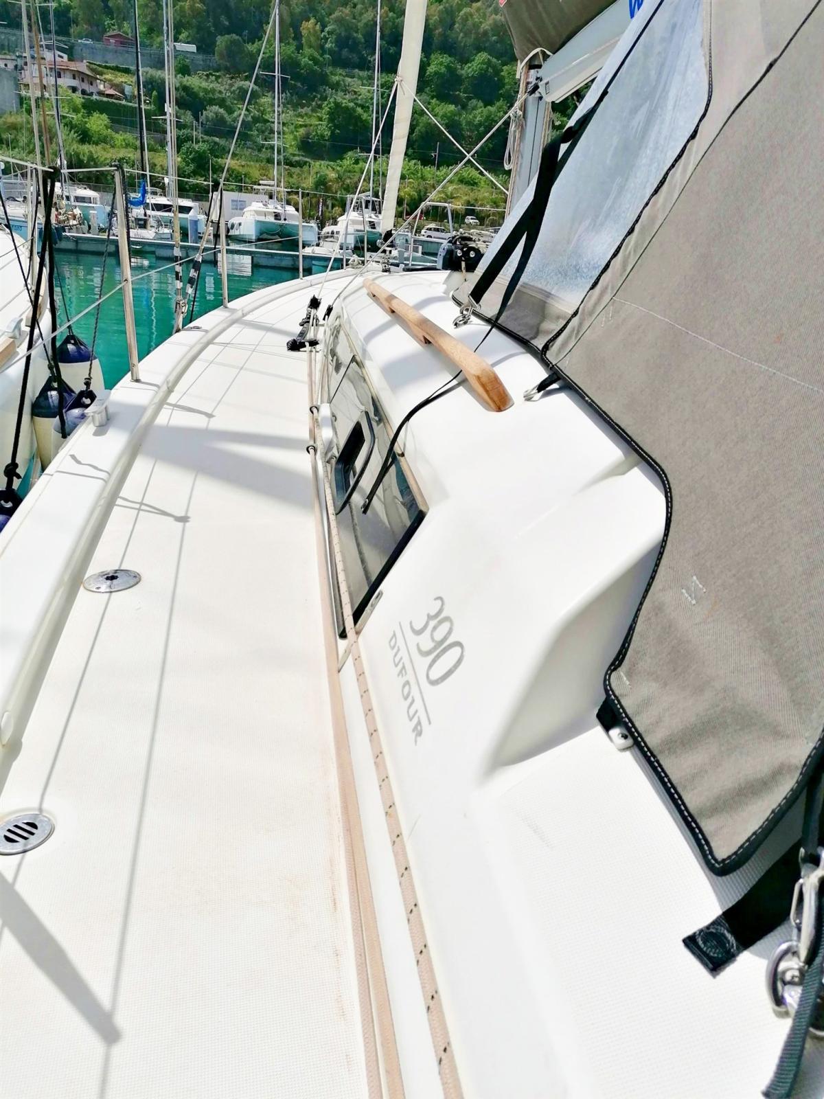 3 double cabins and 3 bathrooms, 8 berths (6+2), bleached oak interior, Volvo 40 hp engine, battened mainsail and furling genoa, lazy bah, lazy jack, sprayhood, bimini, complete Raymarine electronics with gps in the cockpit, teak cockpit bottom and swim platform, barbecue and sink in the cockpit, dinette cushions in eco-leather, etc.