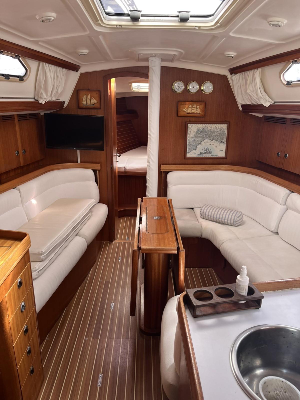 ELAN 40 OF 2002 WITH 40 HP YANMAR ENGINE WITH BATTENED MAINSAIL FULL BATTEN JIB NEW, JENNAKER SEMI-NEW, ANOTHER RACING MAINSAIL. TENDER WITH HONDA 4CV . AUTOPILOT, VHF ICOM, CHARTER PLOTTER NAV STATION. NEW BOILER. THREE DOUBLE CABINS WITH TWO BATHROOMS. LARGE DINETTE WITH GALLEY EQUIPPED WITH TILTING HOB WITH CHEST FRIDGE OVEN AND CHART TOP. WELL-MAINTAINED WOODEN INTERIOR. STEREO SONY.