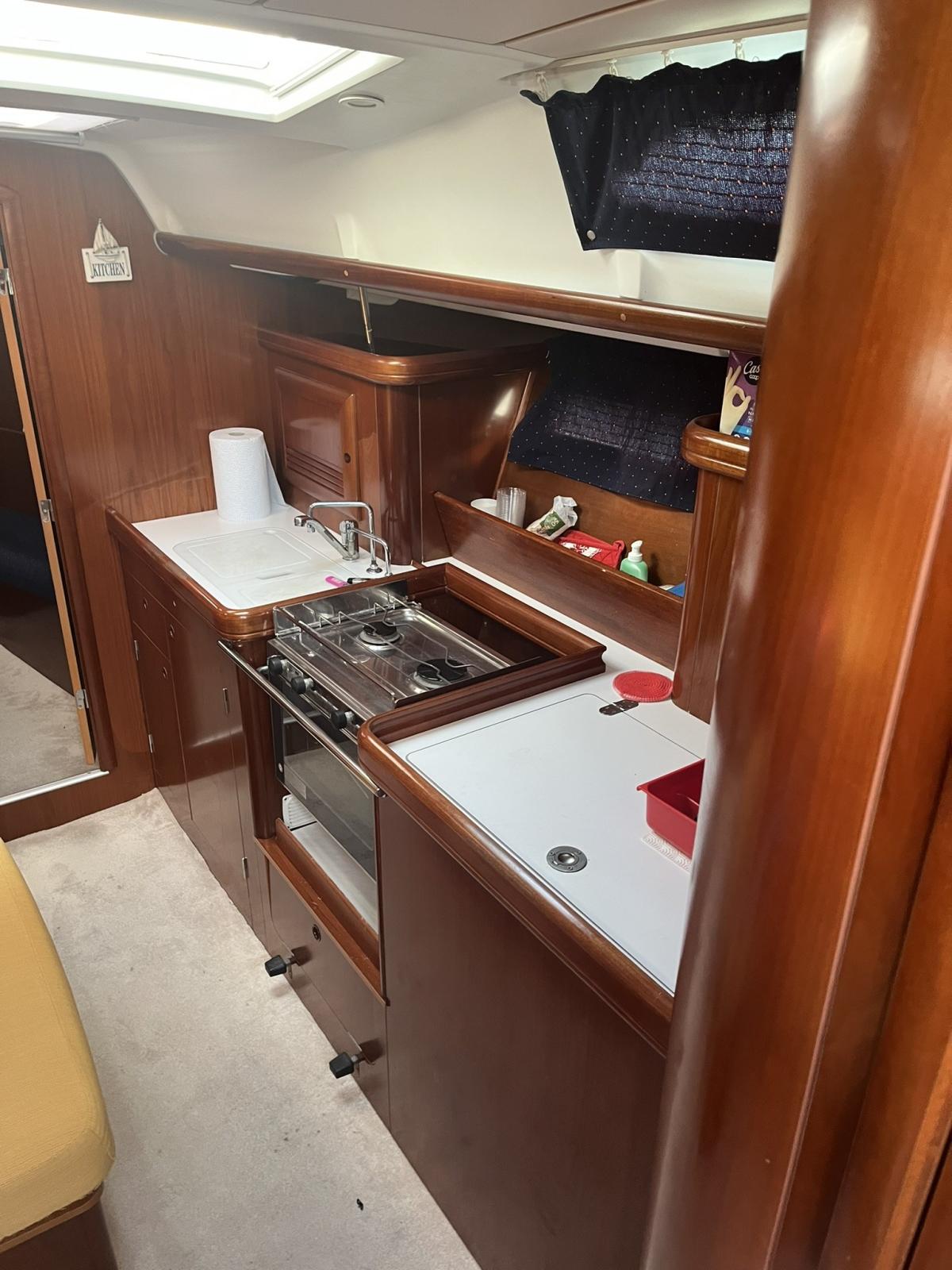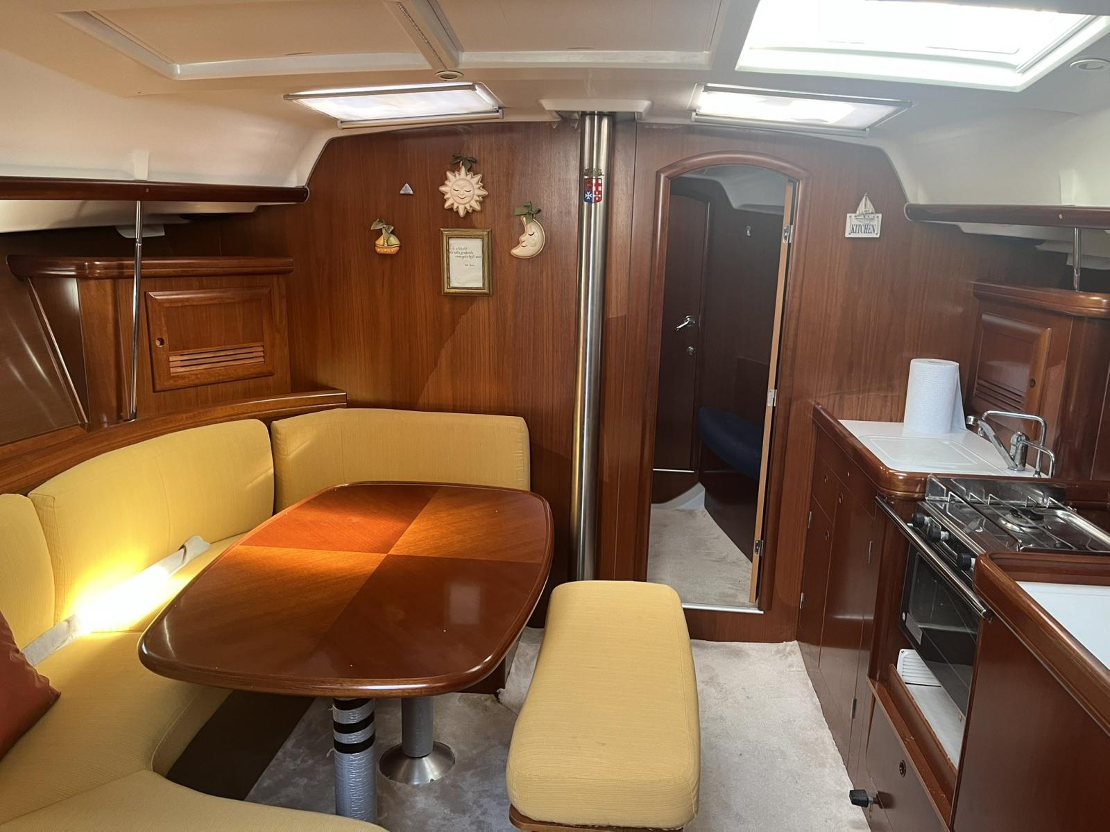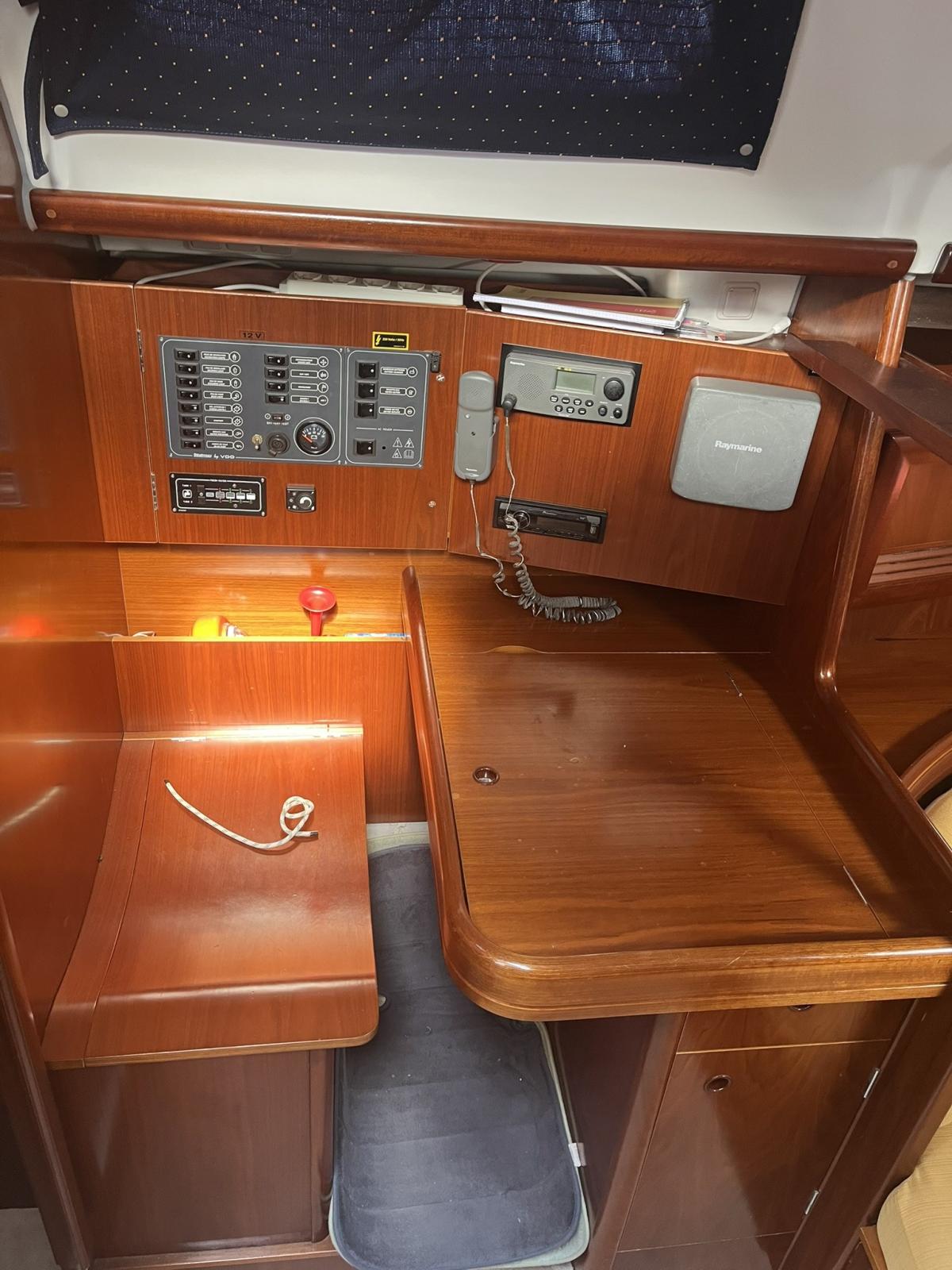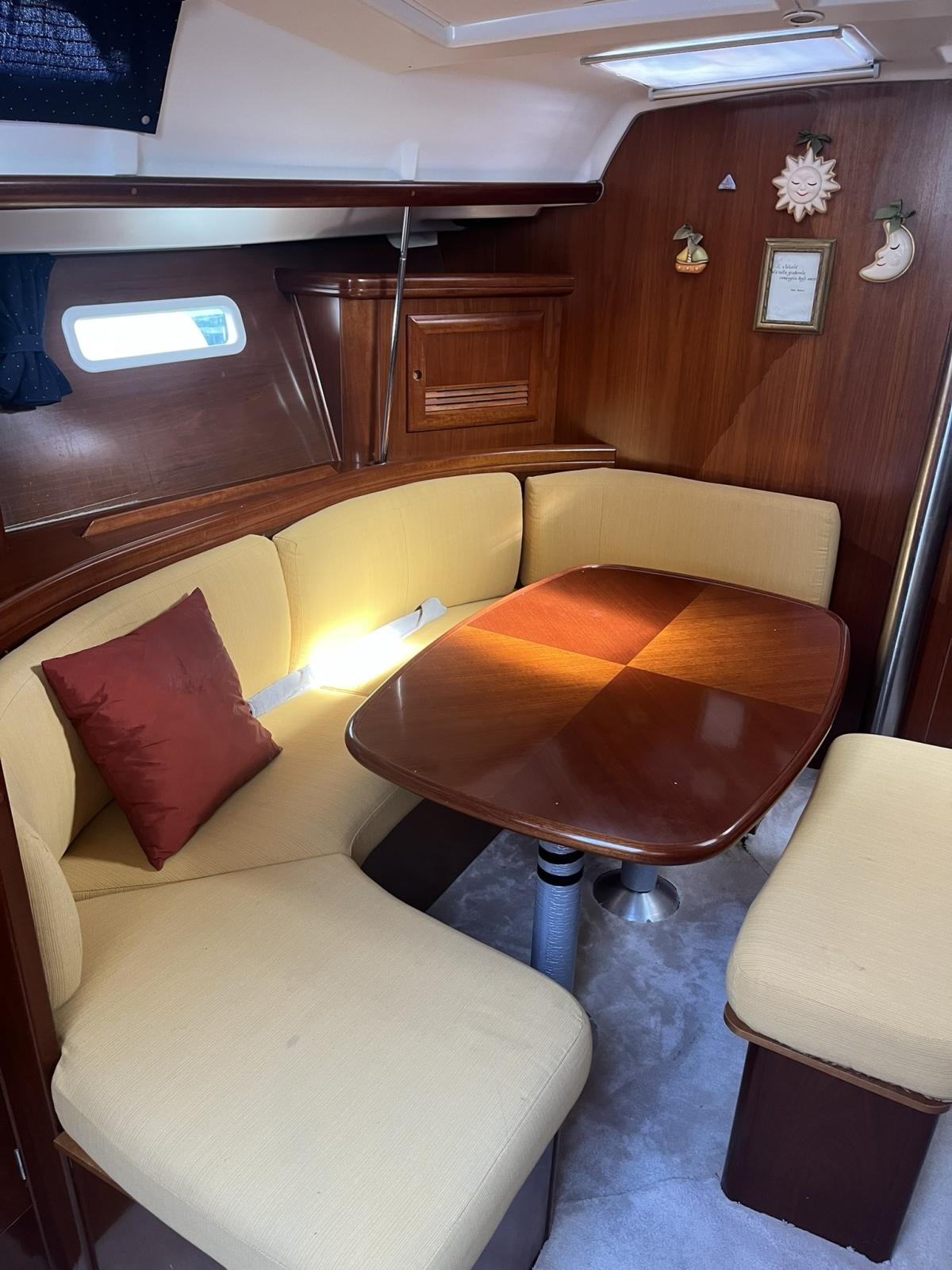 Beceteau Oceanis Clipper 393 version three cabins two bathrooms. Large dinette with equipped kitchen. Teak and carpet. Sewage system, webasto heating, autopilot, 2025 engine seacocks, battened mainsail, furling jib, staysail predisposition. VHF raymarrine 215E BSC, Charplotter RAymare RC435. Elica Tre Palla Canopy Binimi Lazy Bag 2024.