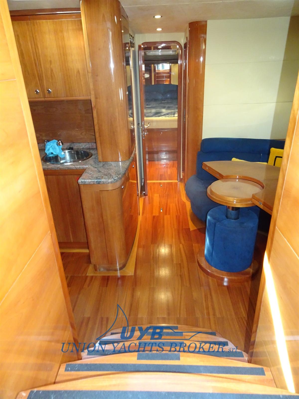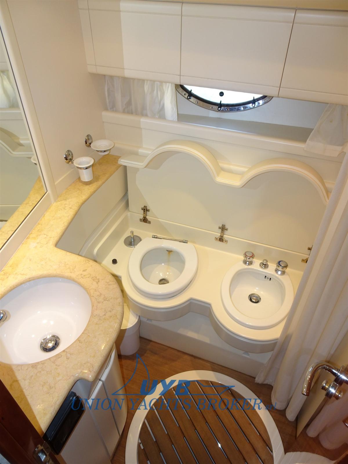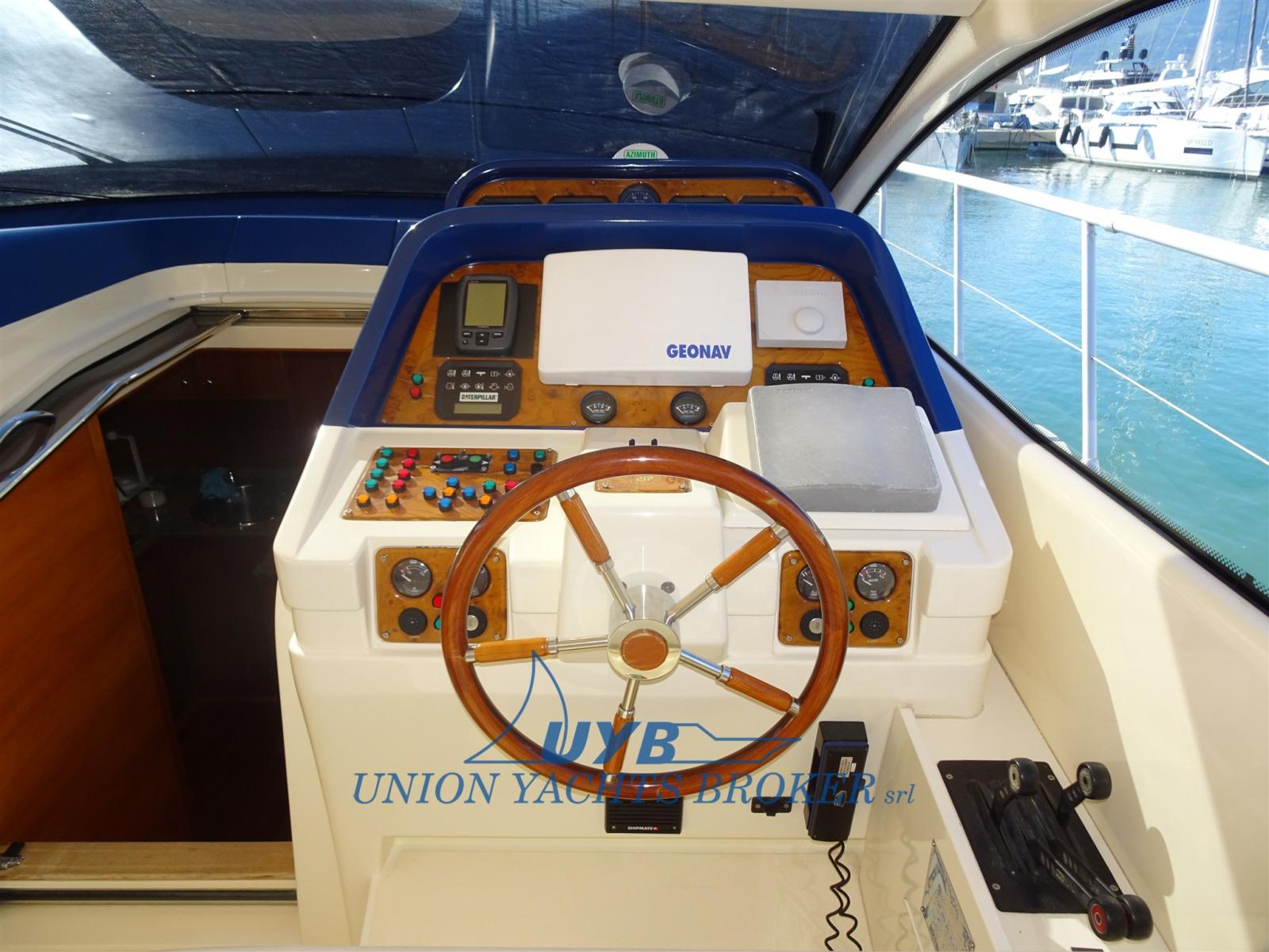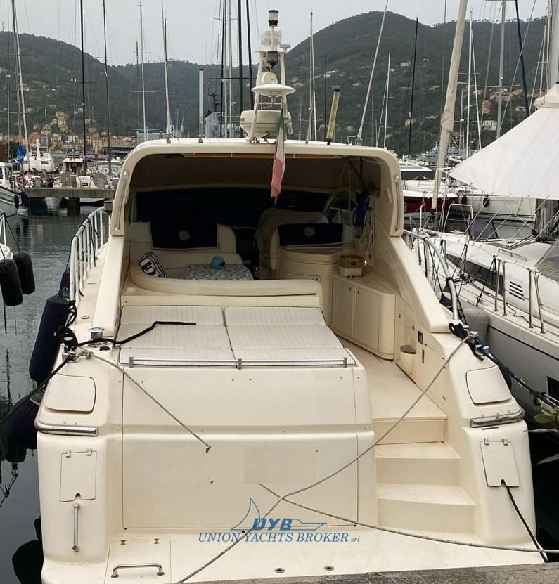 Engine Alarm, Water pressure pump, Deck Shower, Hydraulic Flaps, Tender Garage, Gangway (idraulica), Platform, Automatic Bilge Pump, Manual Bilge Pump, Entry door, Teak Cockpit, Shorepower connector, Water harbor connector system, Voltage Rectifier, Electric Windlass, swimming ladder, cockpit table, Stern Winches (a sinistra).