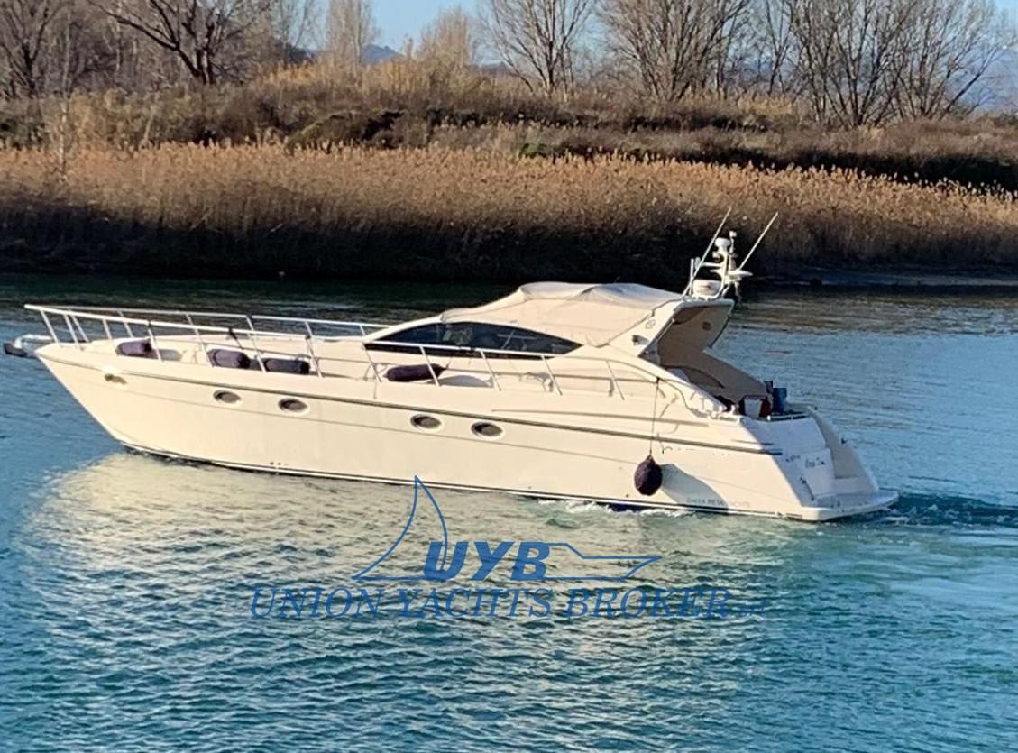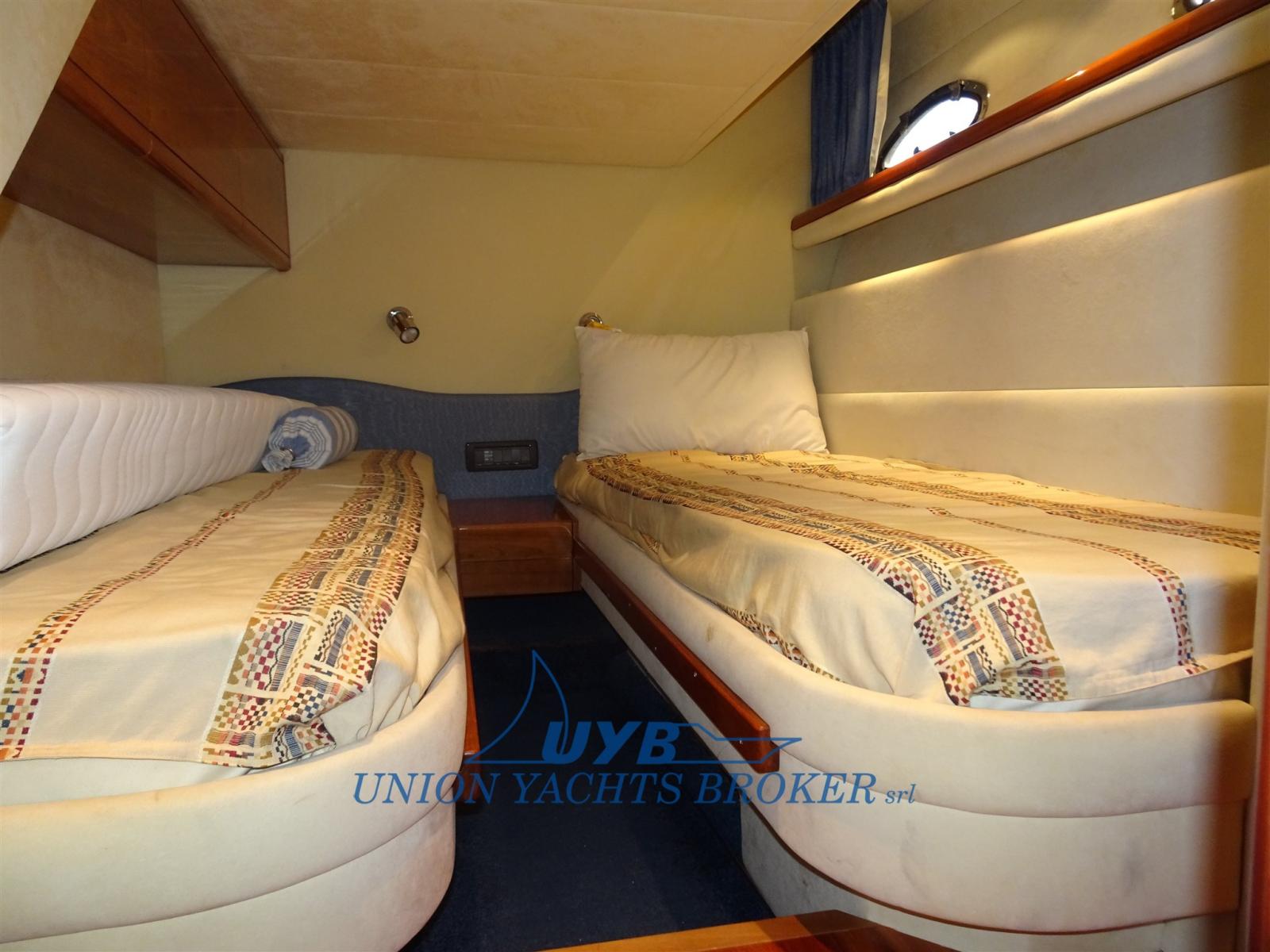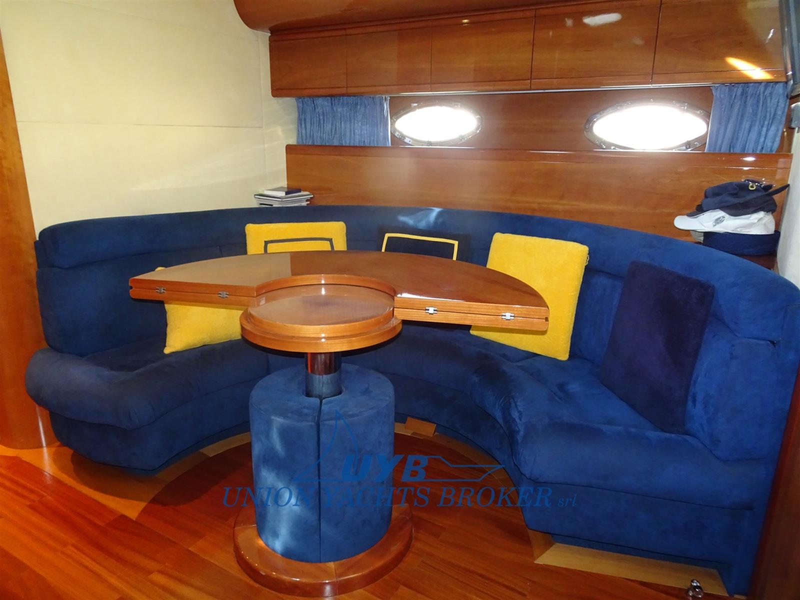 Engine Alarm, Water pressure pump, Deck Shower, Hydraulic Flaps, Tender Garage, Gangway (idraulica), Platform, Automatic Bilge Pump, Manual Bilge Pump, Entry door, Teak Cockpit, Shorepower connector, Water harbor connector system, Voltage Rectifier, Electric Windlass, swimming ladder, cockpit table, Stern Winches (a sinistra).