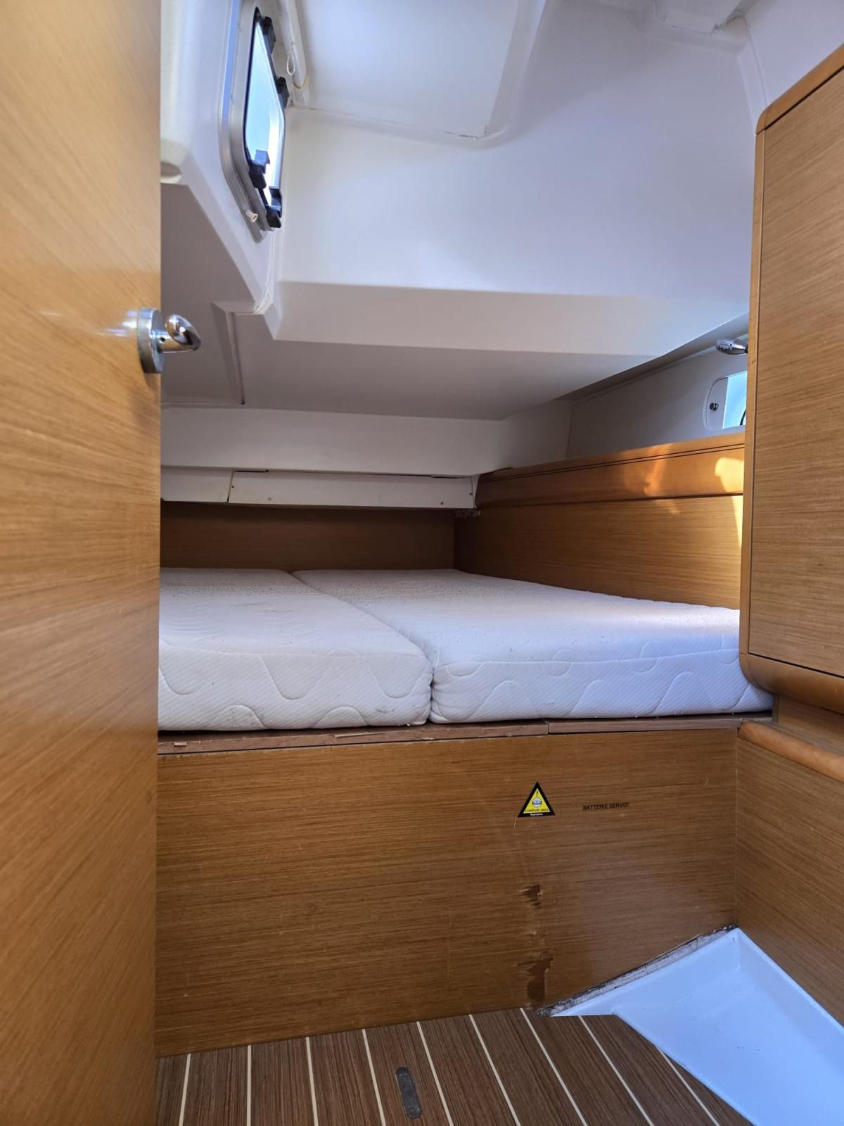 Anchor (+ 60 mt catena), 5 Batteries (3 servizio, 1 motore (2024) + 1 bowthruster), Solar panels, Platform, Manual Bilge Pump, Electric Windlass, 4 Winch.