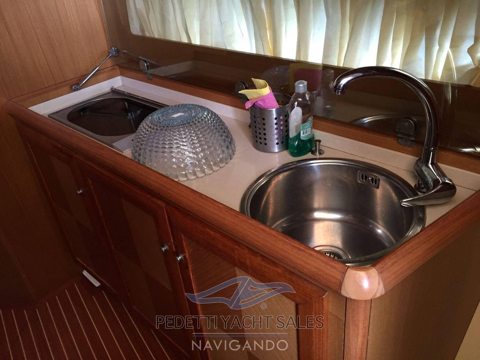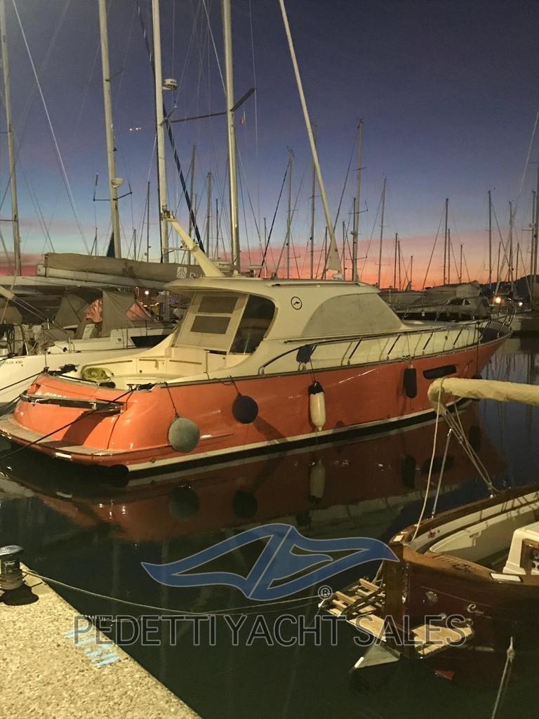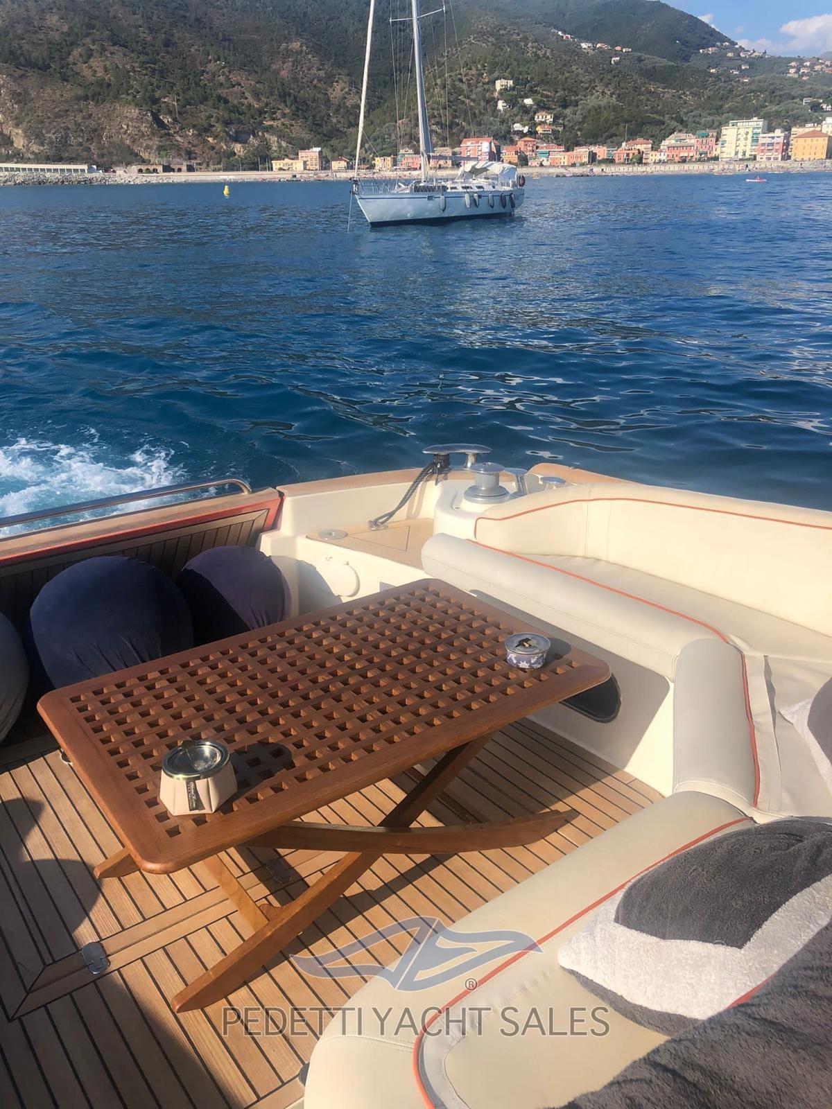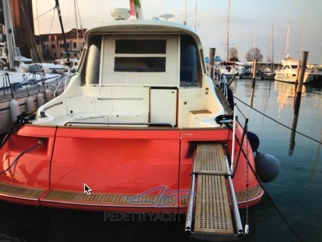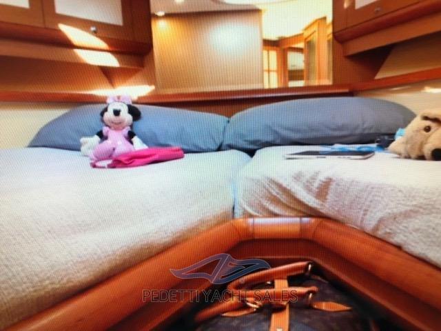 Engine Alarm, Bilge Alarm, Electric Engine Compartment Opening, Water pressure pump, 5 Batteries, Teak Side Decks, Deck Shower, Directional Spotlight, Electric Flaps, Tender Garage, Hard top, Fire Extinguishing System, Flaps Indicators, Courtesy Lights, Underwater lights, Gangway (Besenzoni a scomparsa), 3 Automatic Bilge Pump, Teak Cockpit, Shorepower connector, Electric Windlass, swimming ladder (Elettrica a scomparsa), Stern Winches.