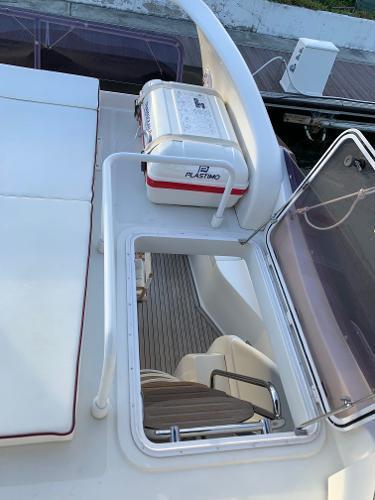 Additional InformationLayout1 double cabin2 single cabins (one convertible into storage)1 x crew cabin2 x bathrooms / electric toiletsInterior Equipment24v/200 vInverter4 x service batteriesWater capacity – 800 literFresh Water makerAir conditionWashing machine3x RefrigeratorMicro wave ovenStereo - FusionEngine & Propulsion2 x Caterpillar,3196 DITA – 809CV – 600 HPBow thrusterFuel capacity : 2000 lFuel consumption L/H: 60/80Cruising speed : 22 knElectronicsDepth sounder- RaymarineGPS x 2 – RaymarineRadar – RaymarineAutopilot – RaymarineVHF – IcomDeckWindlass – electricAnchor – Rocna 25kg,70 meter chainBiminiSwimming ladderCockpit showerHydraulic GangwayOthersDinghy – 5 paxOutboard Engine- Yamaha 15HPLiferaft - 8 pax