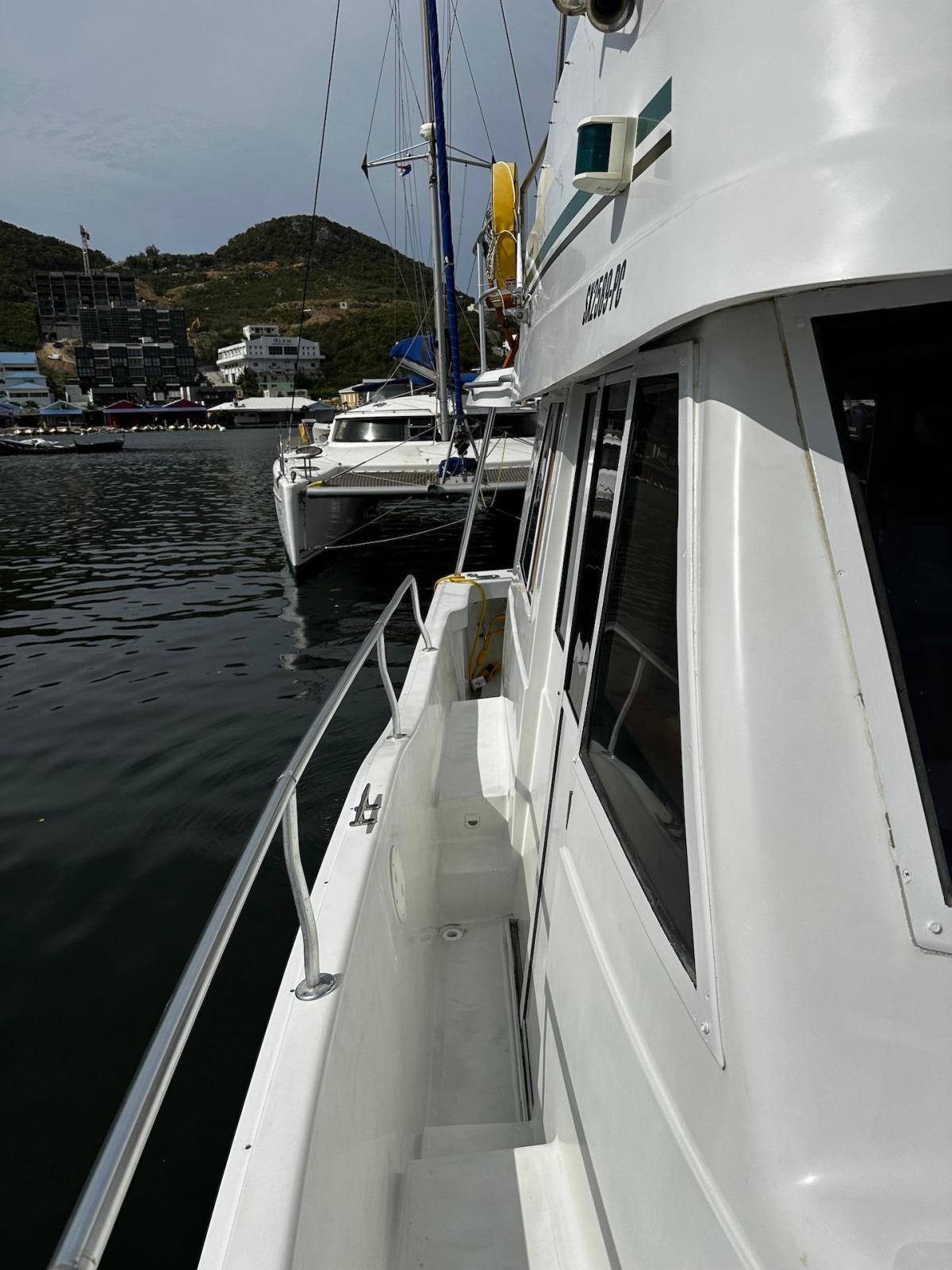 Specification2023/2024 WORKSComplete engine overhaul, everything that needed to be done was done, all oils and filters changed, turbo cartridge, turbo ace housing, turbo rebuild, seawater pump rebuild, engine anti-rust, rode and anodes, impeller, etc.FRESHWATER PUMP 2024Check all batteries + add liquidRepair water heaterRepair aft air conditioningChanged all bilge pumpsClean all bilgesBetter quality custom-made mattresses in the main cabinToilet repairsComplete polishing + waxing LAYOUT 1 x LARGE OWNER’S CABIN1 x CABIN W 2X SINGLE BERTH1 x BATHROOW W. ELECTRIC TOILET AND SEPARATE SHOWER1 X CONVERTIBLE SOFA INTERIOR EQUIPMENTAIR CONDITION MARINE AIR IN SALON AND CABINSFANSSALON CUSHIONS RECENTLY EXCHANGED SOFA FOLDABLE -QUEEN SIZECEILING LIGHTS – LED LARGE TV WITH DVD PLAYER RECENTLY RENEWEDSTEREO -Kenwood CD with fly bridge remote controlGALLEY 3X BURNER STOVE WITH OVEN FRIDGE WITH SEPARATE FREEZERBUILT IN MICROWAVEBUILT IN COFFEE MAKER ELECTRICITYGENSET – ONAN- Kohler 8EOZ INVERTER SOLAR PANEL 250 W W. SMART CONTROLLER4 X SERVICE BATTERIES – 2020ENGINE CAT 3116 – 300 HP- 1600 hrsBOW THRUSTER EXTERIOR EQUIPMENTDAVITS CHROMEDSAMSON POST AT BOW FLYBRIDGE WITH COMFORTABLE SEATING FOR 6 TO 8 PERSONREMOTE CONTROL FOR STEREO AT FLYBRIDGETELEPHONE INTERCOM SYSTEM FROM FLYBRIDGE TO GALLEYRADAR RAYTHEON - 2019LARGE CANVAS BIMINI AT FLYANCHOR EQUIPMENT:2 X Danforths, 150' chain/rope foot-operated controlsDINGHY - Aruba 11’ OUTBOARD - 15hp Yamaha MOORINGBIMINI TOP AND ECNLOSUREBBQ2 TV AND DVD