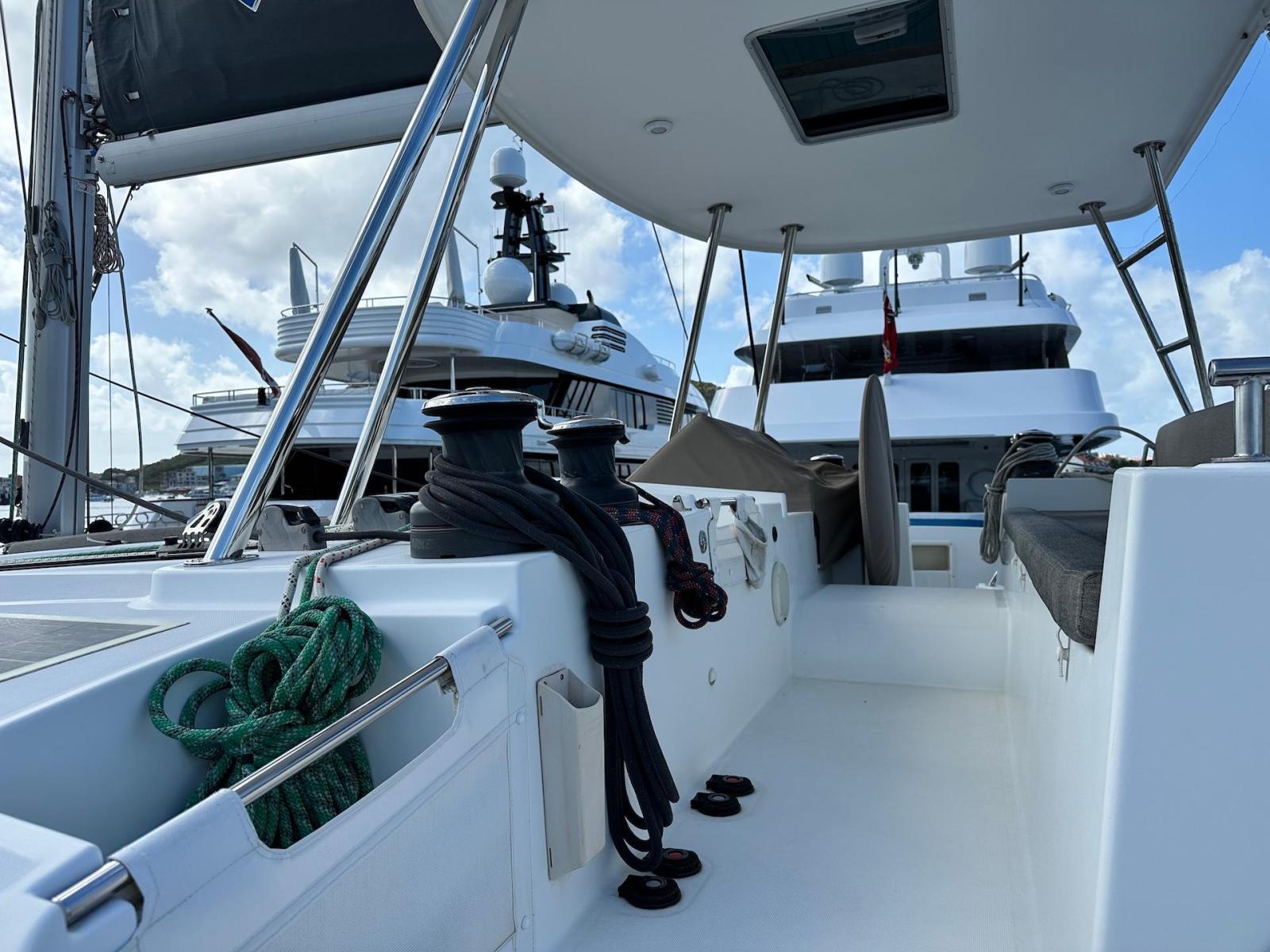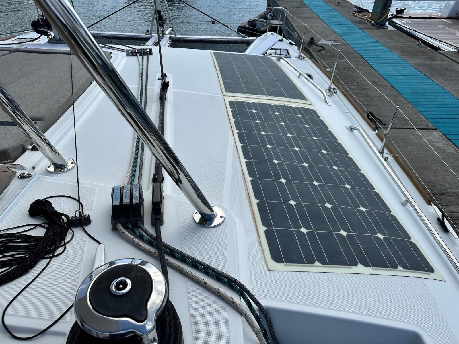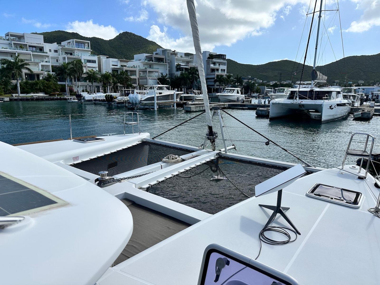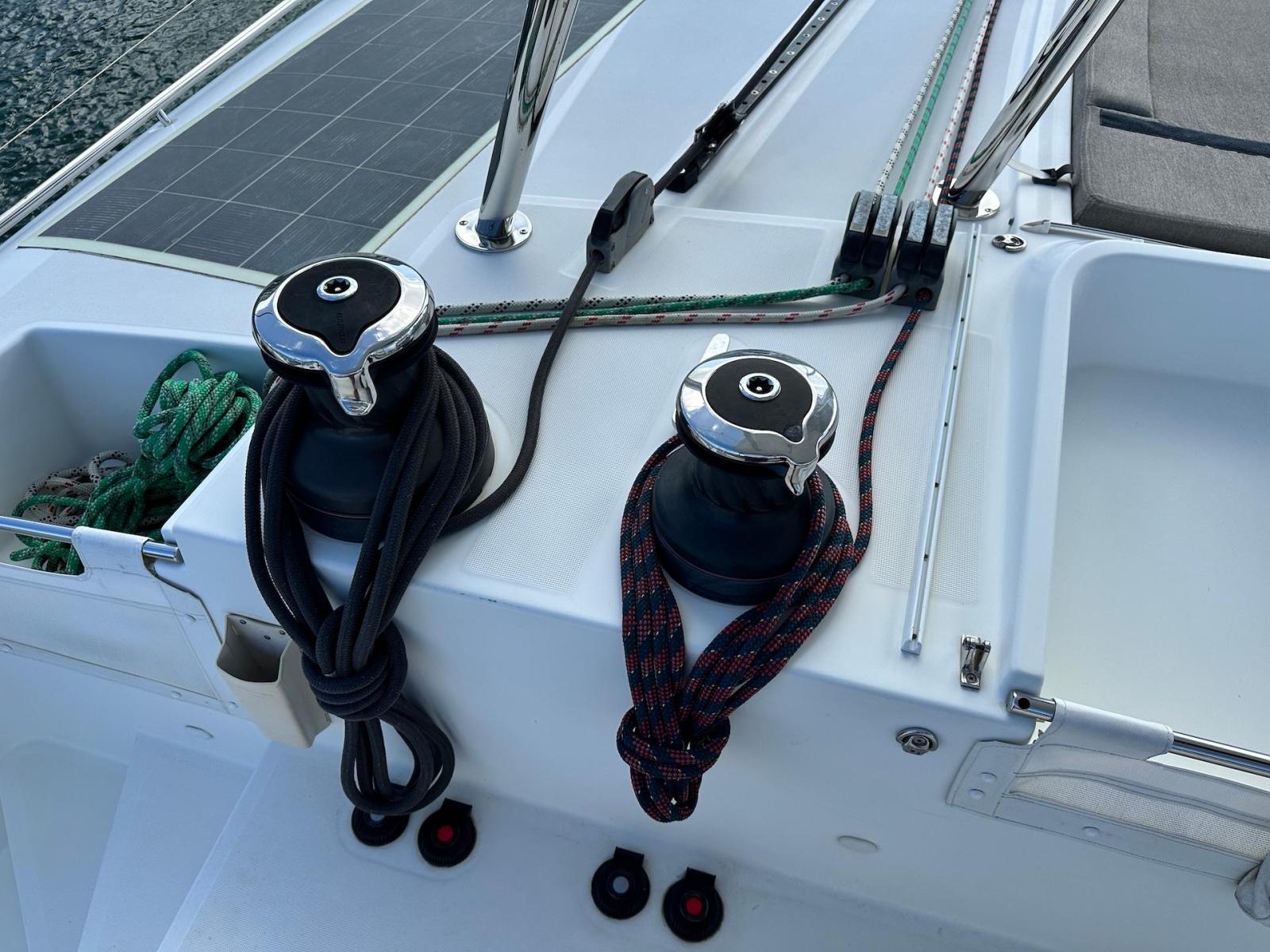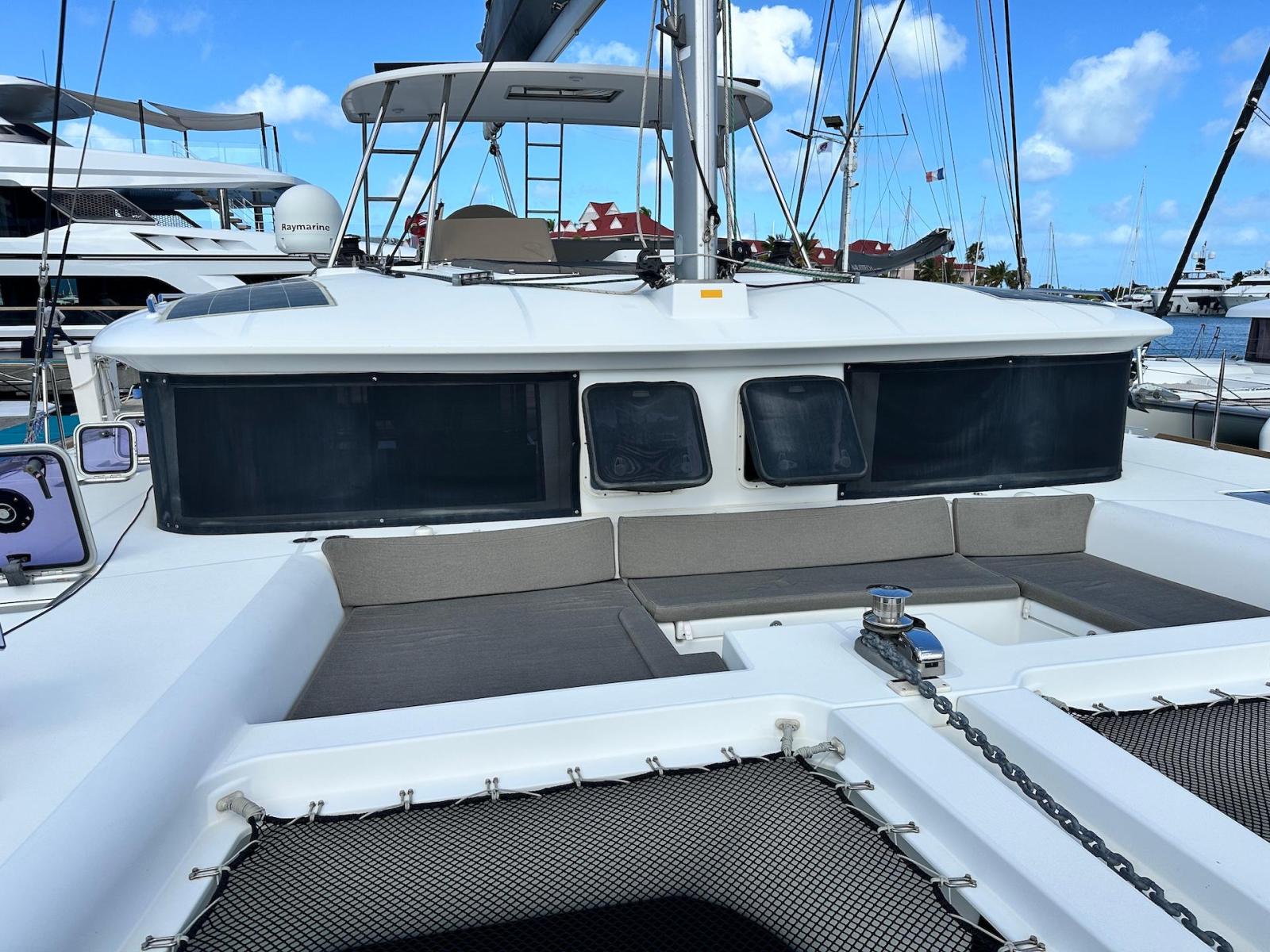 SpecificationInterior Equipment:• 4 x A/C Units (Cruisair 48,000 BTU) – Factory Installed• 6 x 2-speed fans• Watermaker AQUA-BASE• 6-filter + remineralizer drinking water filtration system (2023)• Washing Machine (BEKO, 5kg)• 2 x TVs with Raymarine Antenna• Fusion MS-RA 70 Sound System with 6 built-in speakers• Safe (Installed 2023)• New Carpet (2023)• New Mattress in Owner’s Cabin (2023) Galley:• Propane Oven & Stove (ENO) + 6 propane bottles• Refrigerator & Freezer (Frigonautica)• Microwave (Samsung)• Dishwasher (Electrolux)• Saltwater tap with foot pump• Blender & Coffee Grinder• Full set of dishes and glasses Bathrooms:• 3 x Electric toilets (saltwater flush with macerators)• 3 x Holding tanks• Shower in each bathroom• Teak floors Engines & Propulsion:• 2 x Yanmar 54HP (2,600 hrs)• 3-bladed folding props (Flex-O-Fold, 2021) Electrical & Power:• Cummins Onan Generator (11 KVA, 2,200 hrs)• 4 x Lithium Batteries (2023)• Solar Array (3,000 watts total, 2023):• 4 x 150W flexible solar panels (cabin top)• 4 x solar panels on stainless steel arch (2023)• Victron 5000W Inverter/Charger (2024) – Can power all A/C units Exterior Equipment:• Complete cushion set (cockpit, flybridge, forward sunbathing area)• Teak cockpit• Hardtop Bimini (2023)• Cockpit refrigerator (Waeco)• Passerelle• 48Kg ULTRA stainless steel anchor• 300-foot galvanized steel anchor chain (2023)• Windlass (QUICK) with chain counter + spare Delta anchor, chain & rode• Black trampoline replacement (2023)• Davits Sails & Rigging:• Square Top Mainsail• Roller Furling Genoa• Code 0 on roller furling (2016)• Asymmetrical Spinnaker w/ sock (1.5 oz, 2019)• Storm Jib (2019)• Headstay replaced (2021)• Dyneema Reefing Lines (12mm)• Jib Drum (2023)• 1 x Electric Harken Winch Electronics & Navigation (Raymarine):• Plotter, Depth Sounder, Wind Speed/Direction, Radar, AIS• Autopilot• VHF Radio at Helm & Nav StationExtras & Safety:• 10ft VIPER Dinghy with 15HP Mercury Outboard (electric start, 2019)• Full safety equipment, including liferaft