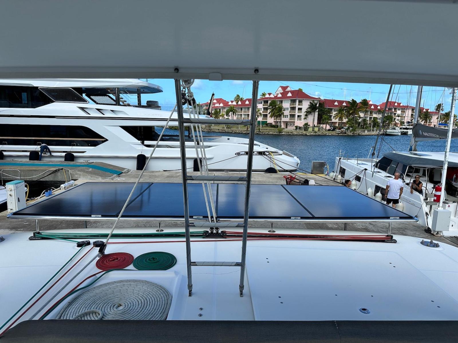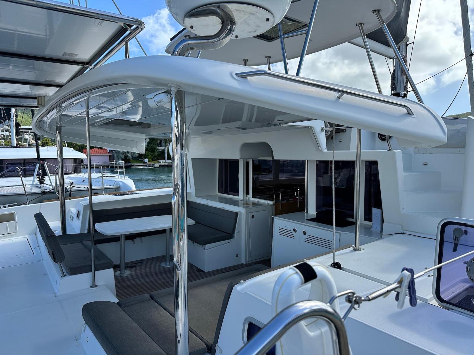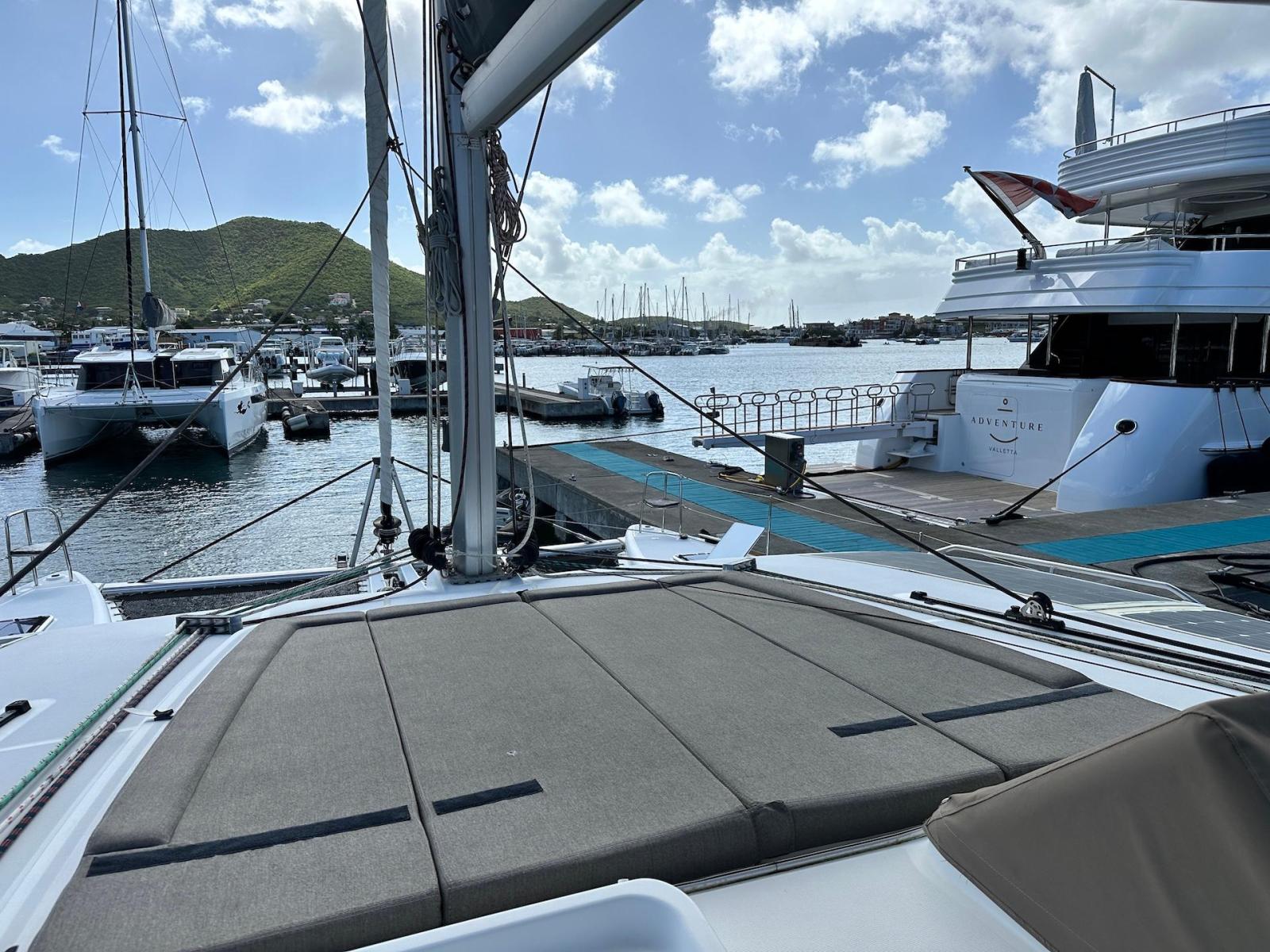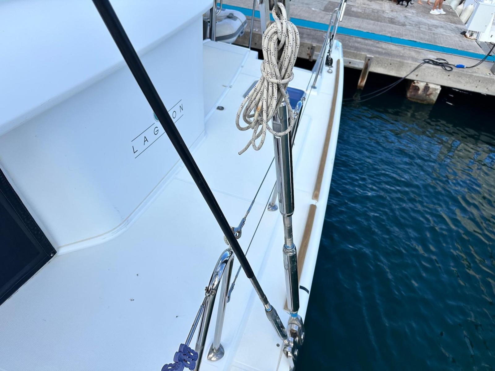 SpecificationInterior Equipment:• 4 x A/C Units (Cruisair 48,000 BTU) – Factory Installed• 6 x 2-speed fans• Watermaker AQUA-BASE• 6-filter + remineralizer drinking water filtration system (2023)• Washing Machine (BEKO, 5kg)• 2 x TVs with Raymarine Antenna• Fusion MS-RA 70 Sound System with 6 built-in speakers• Safe (Installed 2023)• New Carpet (2023)• New Mattress in Owner’s Cabin (2023) Galley:• Propane Oven & Stove (ENO) + 6 propane bottles• Refrigerator & Freezer (Frigonautica)• Microwave (Samsung)• Dishwasher (Electrolux)• Saltwater tap with foot pump• Blender & Coffee Grinder• Full set of dishes and glasses Bathrooms:• 3 x Electric toilets (saltwater flush with macerators)• 3 x Holding tanks• Shower in each bathroom• Teak floors Engines & Propulsion:• 2 x Yanmar 54HP (2,600 hrs)• 3-bladed folding props (Flex-O-Fold, 2021) Electrical & Power:• Cummins Onan Generator (11 KVA, 2,200 hrs)• 4 x Lithium Batteries (2023)• Solar Array (3,000 watts total, 2023):• 4 x 150W flexible solar panels (cabin top)• 4 x solar panels on stainless steel arch (2023)• Victron 5000W Inverter/Charger (2024) – Can power all A/C units Exterior Equipment:• Complete cushion set (cockpit, flybridge, forward sunbathing area)• Teak cockpit• Hardtop Bimini (2023)• Cockpit refrigerator (Waeco)• Passerelle• 48Kg ULTRA stainless steel anchor• 300-foot galvanized steel anchor chain (2023)• Windlass (QUICK) with chain counter + spare Delta anchor, chain & rode• Black trampoline replacement (2023)• Davits Sails & Rigging:• Square Top Mainsail• Roller Furling Genoa• Code 0 on roller furling (2016)• Asymmetrical Spinnaker w/ sock (1.5 oz, 2019)• Storm Jib (2019)• Headstay replaced (2021)• Dyneema Reefing Lines (12mm)• Jib Drum (2023)• 1 x Electric Harken Winch Electronics & Navigation (Raymarine):• Plotter, Depth Sounder, Wind Speed/Direction, Radar, AIS• Autopilot• VHF Radio at Helm & Nav StationExtras & Safety:• 10ft VIPER Dinghy with 15HP Mercury Outboard (electric start, 2019)• Full safety equipment, including liferaft