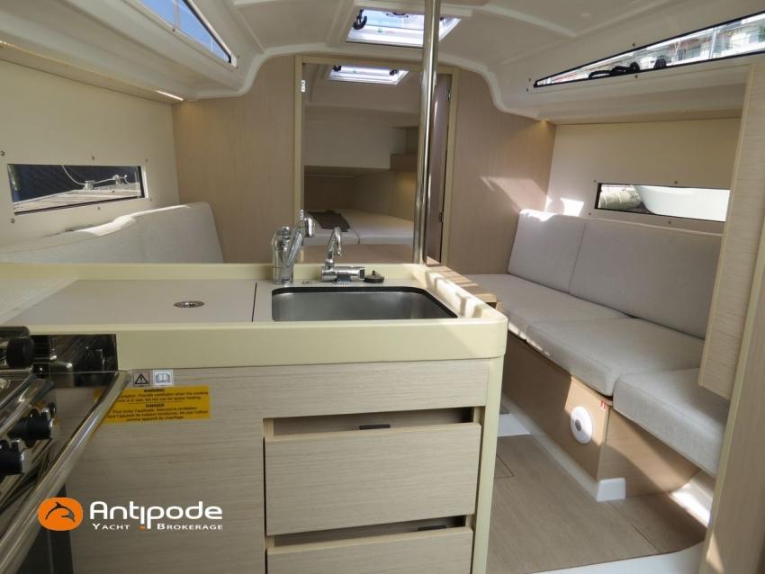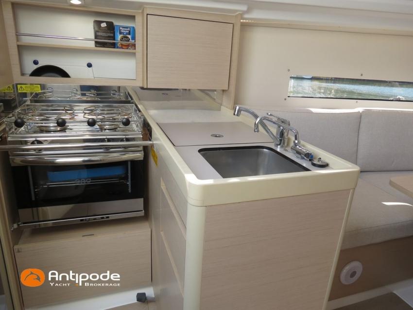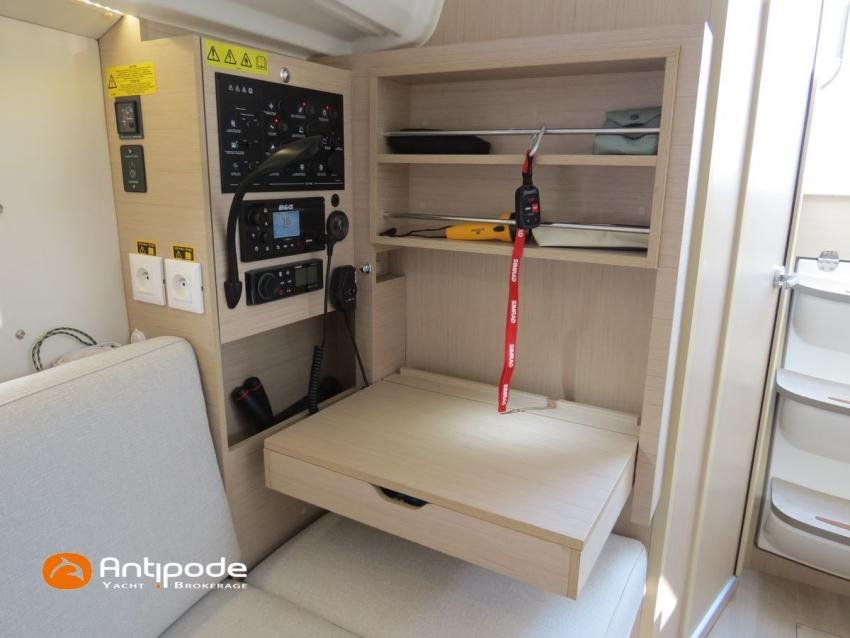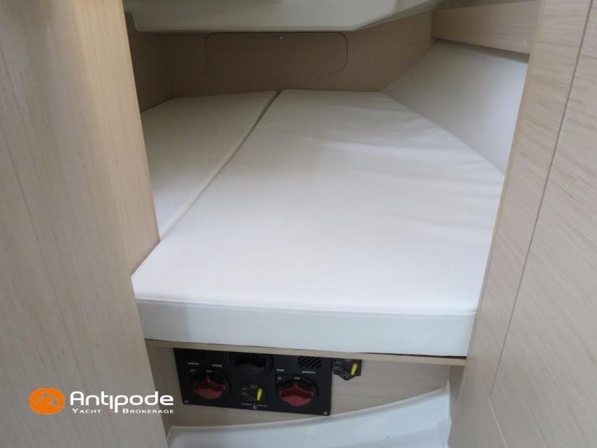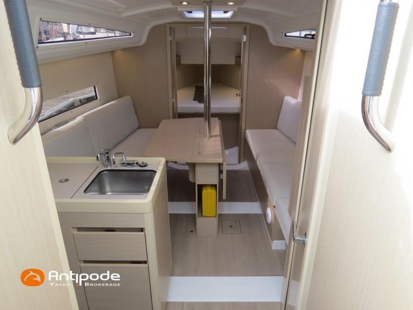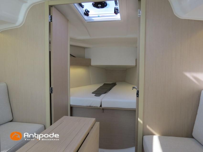 OCEANIS 30.1, 2022, first hand, Short draft keel, Yanmar 3YM20, 21 hp (44 hrs), Confort layout, Light oak interior woodwork, Neo 05 saloon upholstery, Mosquito screens for opening windows and hatches, Upwind & Downwind package, 2 roof winches for adjustment and sail handling - Harken 20ST - Harken 20.1 ST, Genoa sheets travellers, GRP bowsprit, GRP cockpit table with 2 folding leaves, Twin steering wheels, Cockpit sprayhood, Electric windlass - Lewmar 700W, Single line main sail reefing system, Main sail lazy bag, Main sail lazy jacks, Furlable code 0 & Facnor FX900 furler, Offshore package, In board autopilot - B&G Nac3, Autopilot remote control, Navigation system - B&G, Cockpit repeater - B&G Triton 2 Graphic, GPS and chartplotter (cockpit) - B&G Zeus 7 wide wireless, Electronic navigation charts, AIS receiver, DSC VHF at chart table - B&G V60, Fusion MS-RA70N Hi-Fi system + speakers, Cockpit speakers (Fusion sytem), Fridge unit 12 V (top opening door), Hot and cold pressurized water, 220 V shore power + battery charger - Cristec 25A, Service batteries - 2 x 70Ah, 12 V to 220 V Inverter - Mastervolt 700W, Interior USB & 220 sockets, Holding tank, Sea water foot pump, Leds navigation lights, Leds interior lights, 4 men coastal safety equipments, Anchor + chain, Fenders and warps, Actual first owner, never chartered, Located Brittany. For more information or to make an appointment for a visit, contact : Jean-Baptiste Lemaire +33 6 10 25 00 03 - jb@antipode-yachts.com