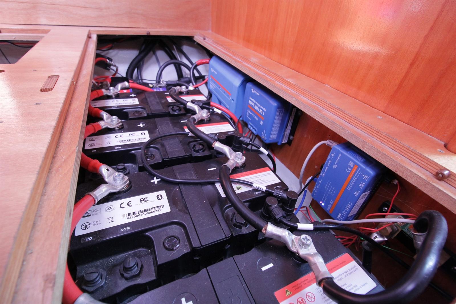 Anchor (DELTA type charrue), 4 Batteries (x100ah Lithium premium PYLONTECH), Battery charger (convertisseur Victron multiplus II 3000w de 2023), Deck Shower (avec mitigeur), Twin Steering, Auxiliary Engine (HB 6cv 4t de 2023), Solar panels (2x175w avec régulateur MPPT), Platform, Manual Bilge Pump, Teak Cockpit, Shorepower connector, Electric Windlass (55m + 45m de chaine de 10), Outboard Engine Support Bracket, cockpit table (teck), Tender (3Dtender light), 4 Winch (self tailing).