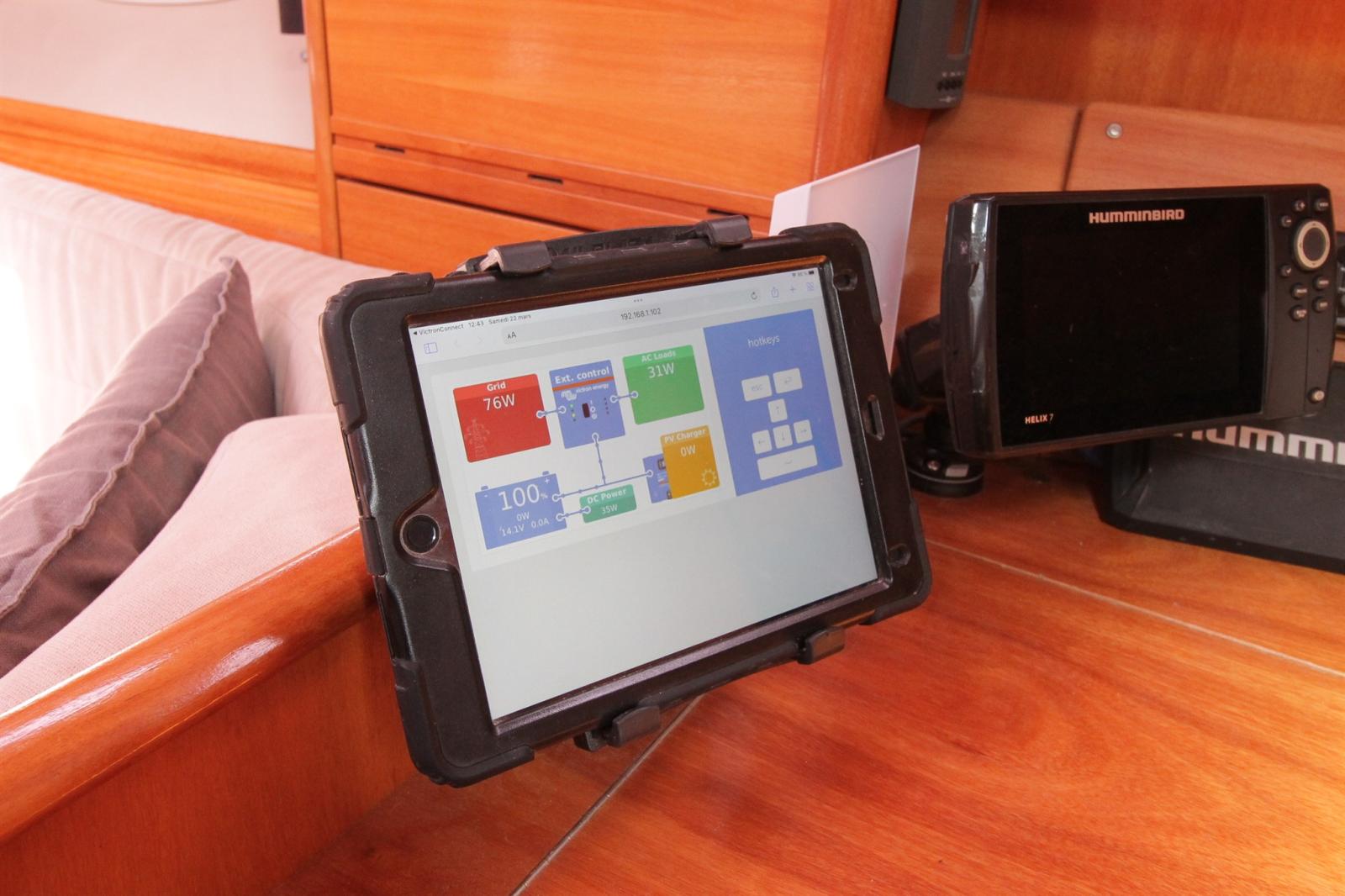 AIS (AISTX emet/recept avec option wifi), 2 Compass, Odometer (Raymarine ST60), Display (gestionnaire batteries VICTRON), DSC vhf (Navicom RT450 DSC), Interface (Gestion centralisée victron Cerbo GX monitoring via bluetooth/wifi), Autopilot (Electrique), Chartplotter (Humminbird Helix 7 avec carte navionics mediterranée 2023), VHF Radio (portable), Sonar (Raymarine ST60), Wind Station (Raymarine ST60).